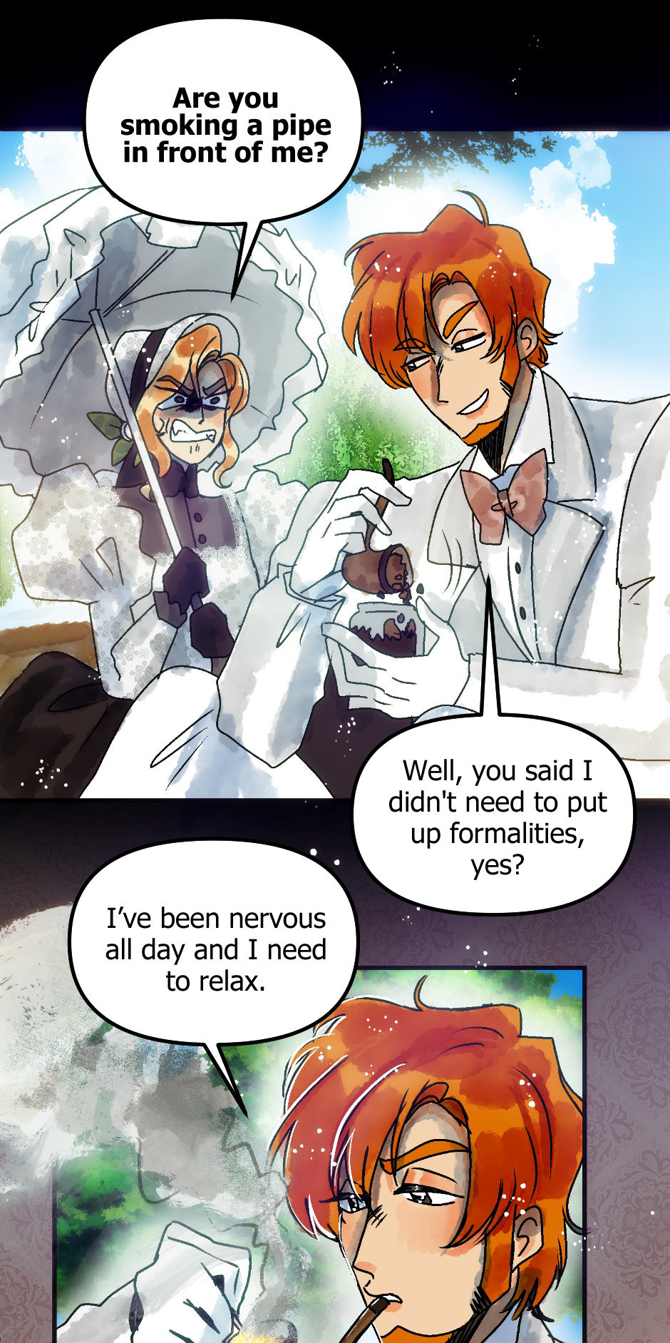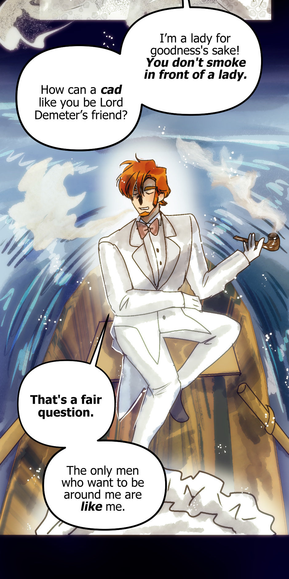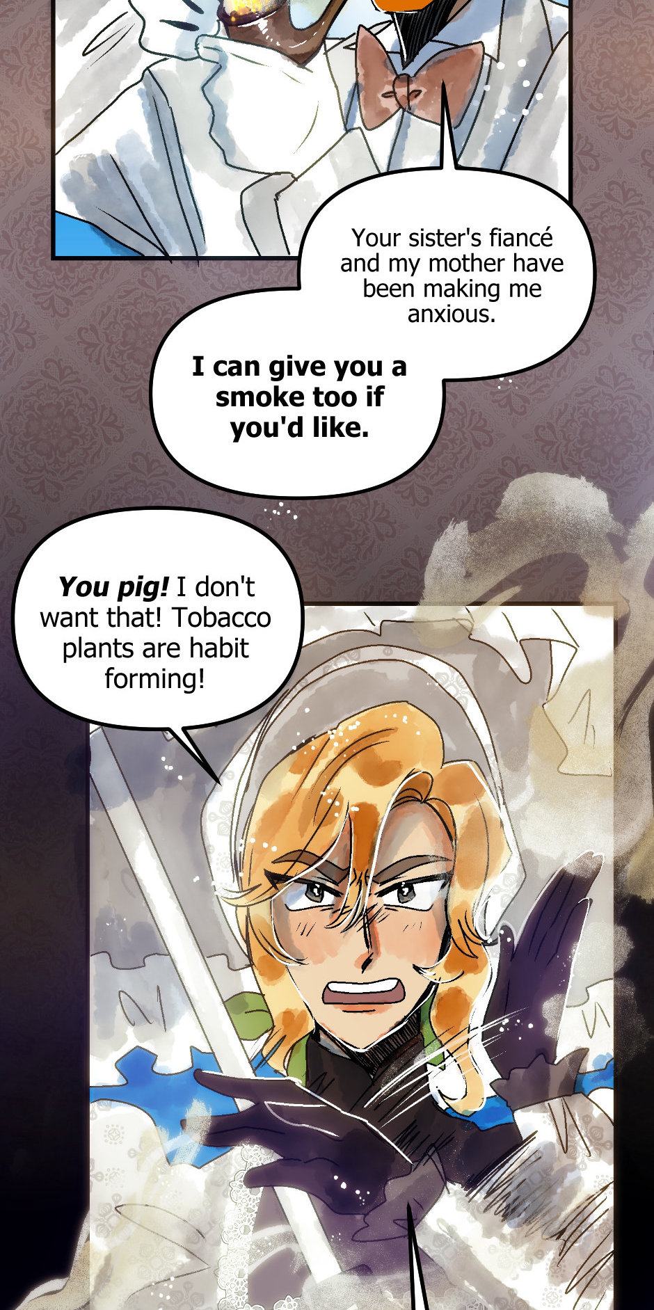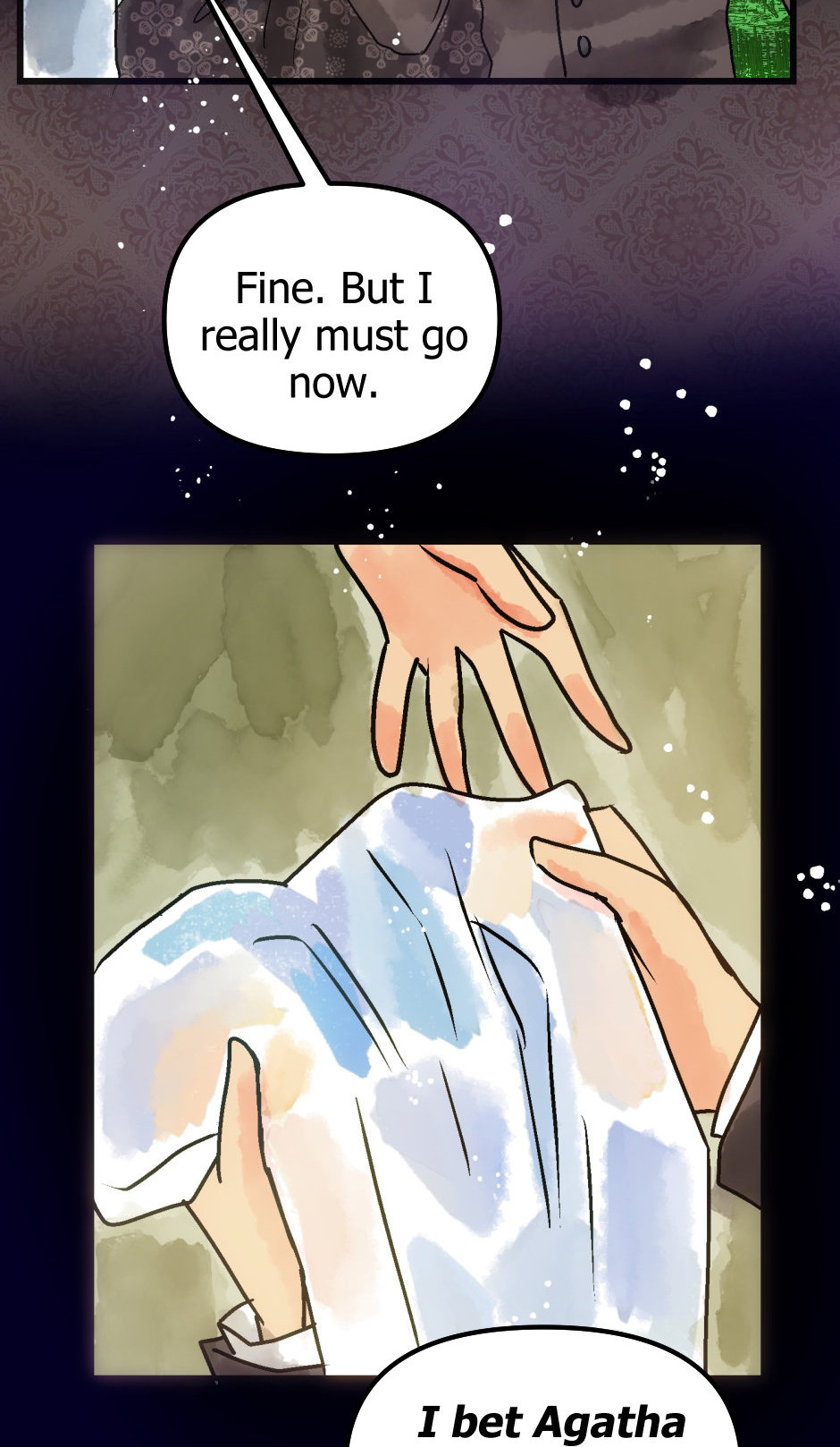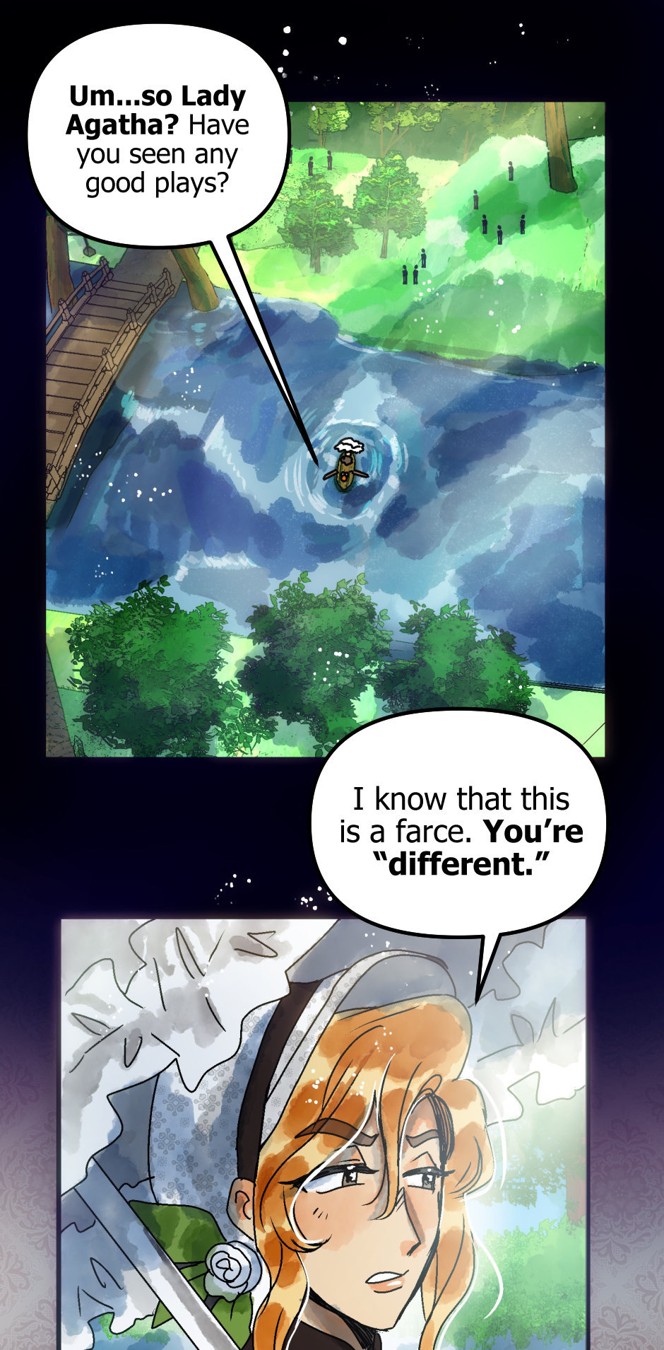 Originally, Linus and Agatha were supposed to interact in the season one finale when he came to the party, but I had to pack so much in it I delayed it until now (.////. ) It seemed so obvious too, since Agatha was looking for a beard.