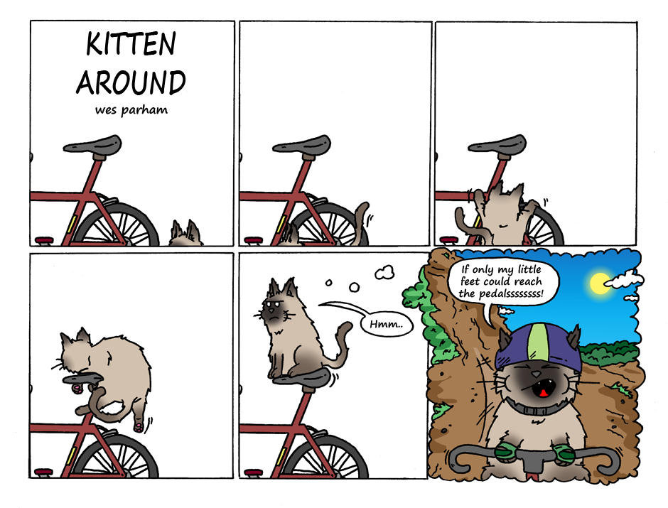 #kitten #cat #cute #bike #imagine #color #colorful #funny #humor #comedy #climb #sunshine #bright #path #outdoors