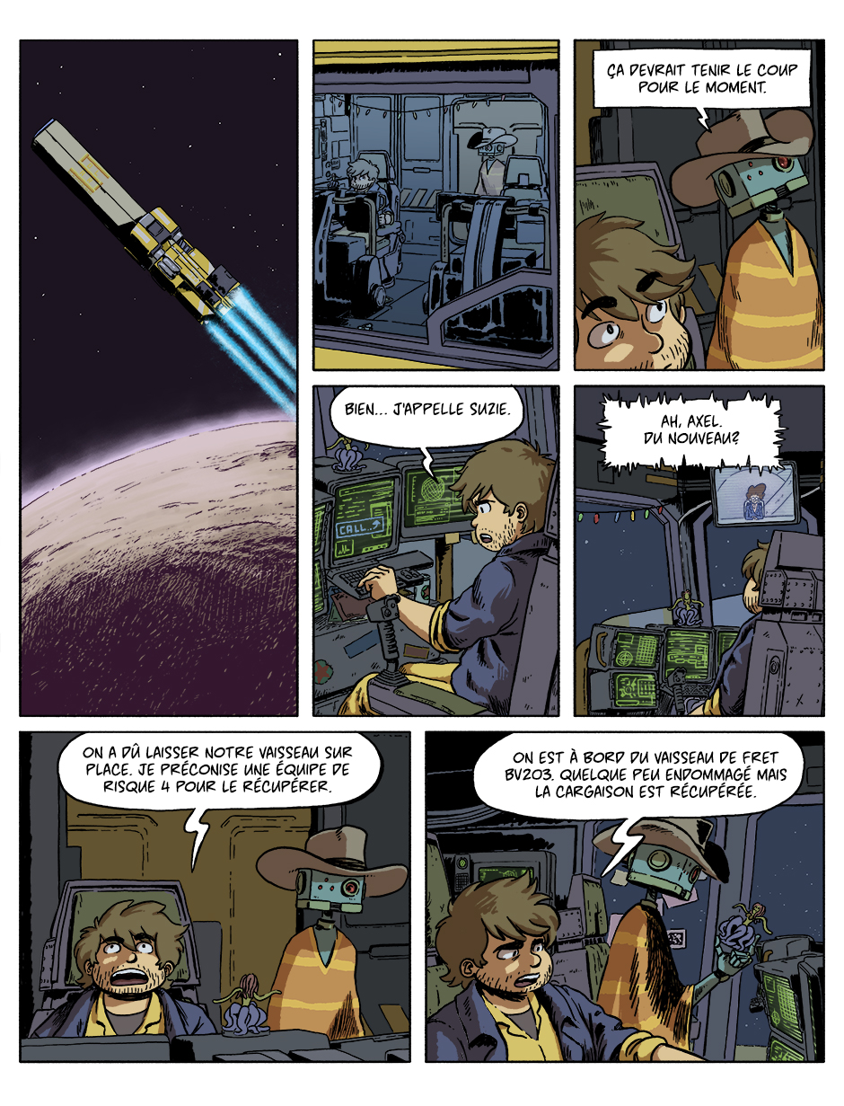 Axel et Wayne traversent la galaxie pour le compte de SolEx (Solar Express), compagnie de transport spatial de fret.