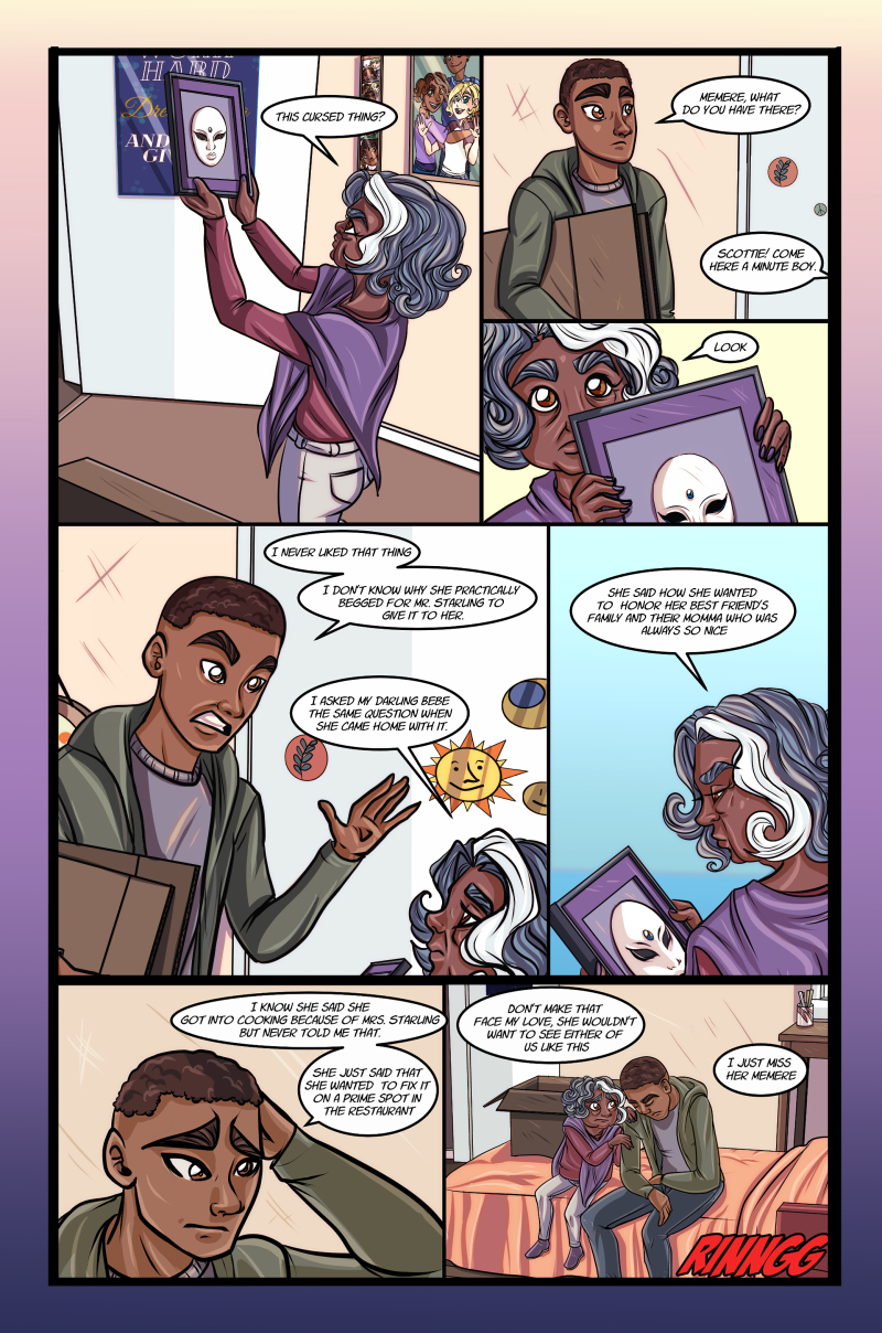 Masks are but a thin veneer that protect us from the monsters inside us all. What then happens when they are removed? For Wren Starling life has never been easy. Death of her mother at and early age and the rumors circulating of her father's involvement have caused society to see the Starling as the type of family that neighbors cross the street to avoid. Ostracized in public and struggling financially at home, Wren never thought that things could get worse. They Have. Strange Portals appearing, people disappearing and a mask that that has made a sinister reappearance from her past has placed Wren in a world of danger that she could never have predicted. After Page 4 we will be moving to a weekly published schedule for every Saturday.