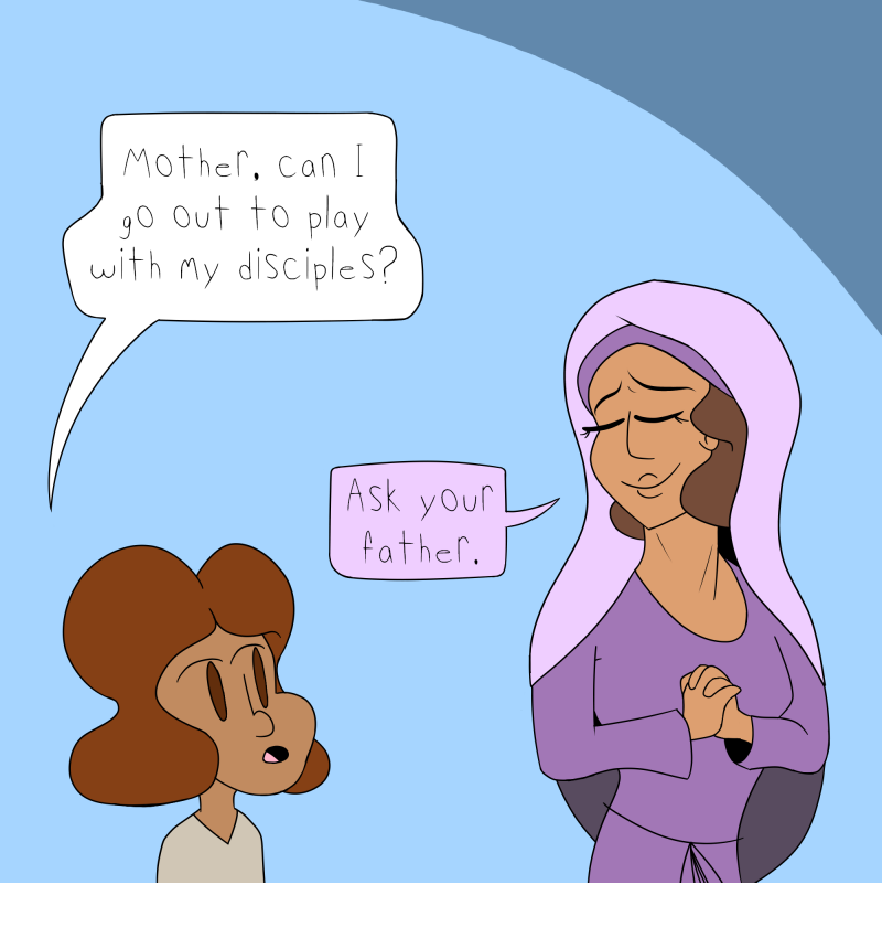 Jesus hangs out with his three parents.