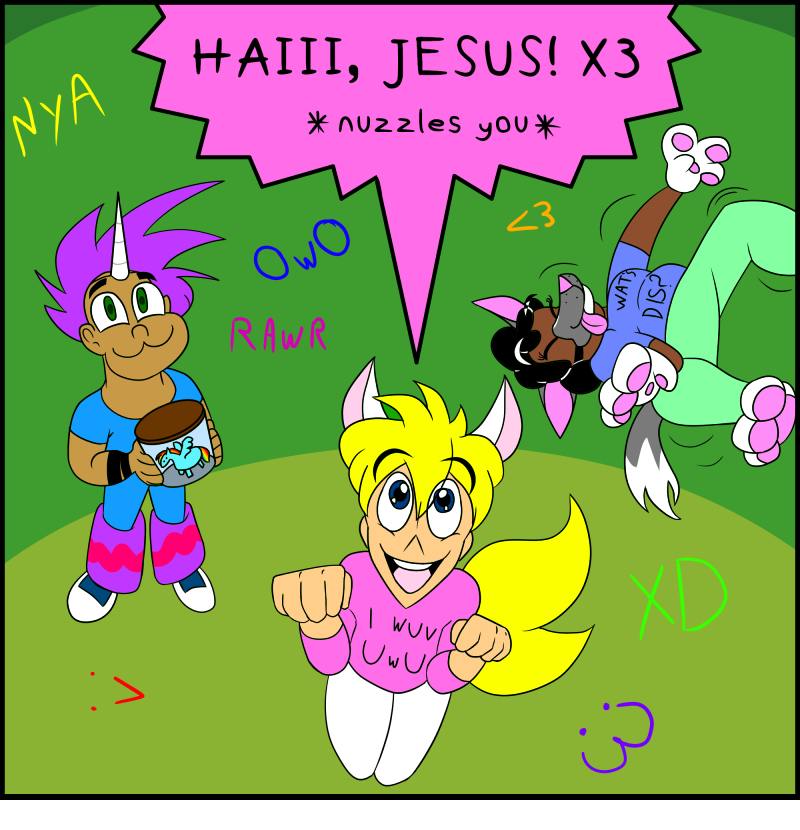 This comic is obviously a joke. Furries can be cool and accepted by Jesus.