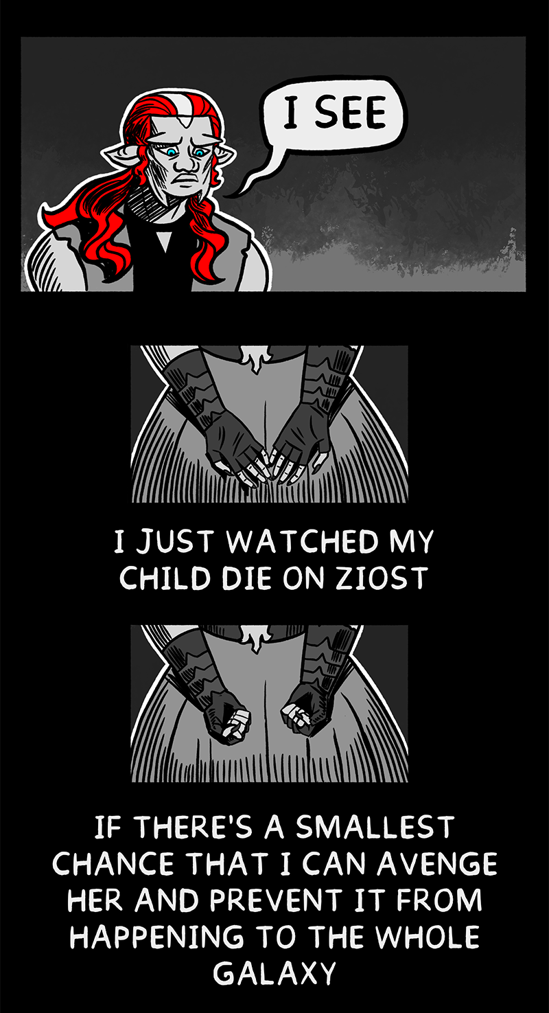 In her grief, Bestia promised to destroy Vitiate, the Sith Emperor.
