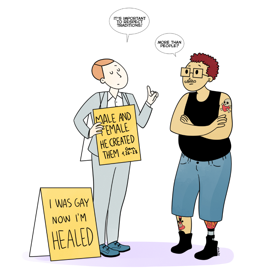 Hi! Here you can find cartoons and comic strips about queerness, gender equality, anti-racism, and social justice. Hope you enjoy, and feel seen and represented!