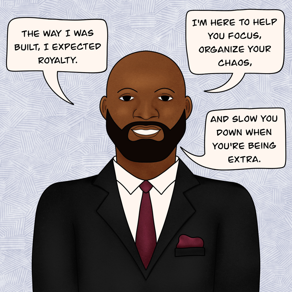 Desperate for structure, Queen builds a digital assistant named Onyx to help keep her on track. He’s smart, efficient, and comes with a little too much personality. Now she’s stuck with a screen that talks back, corrects her calendar, and occasionally reminds her to eat. He’s not wrong… he’s just loud about it.