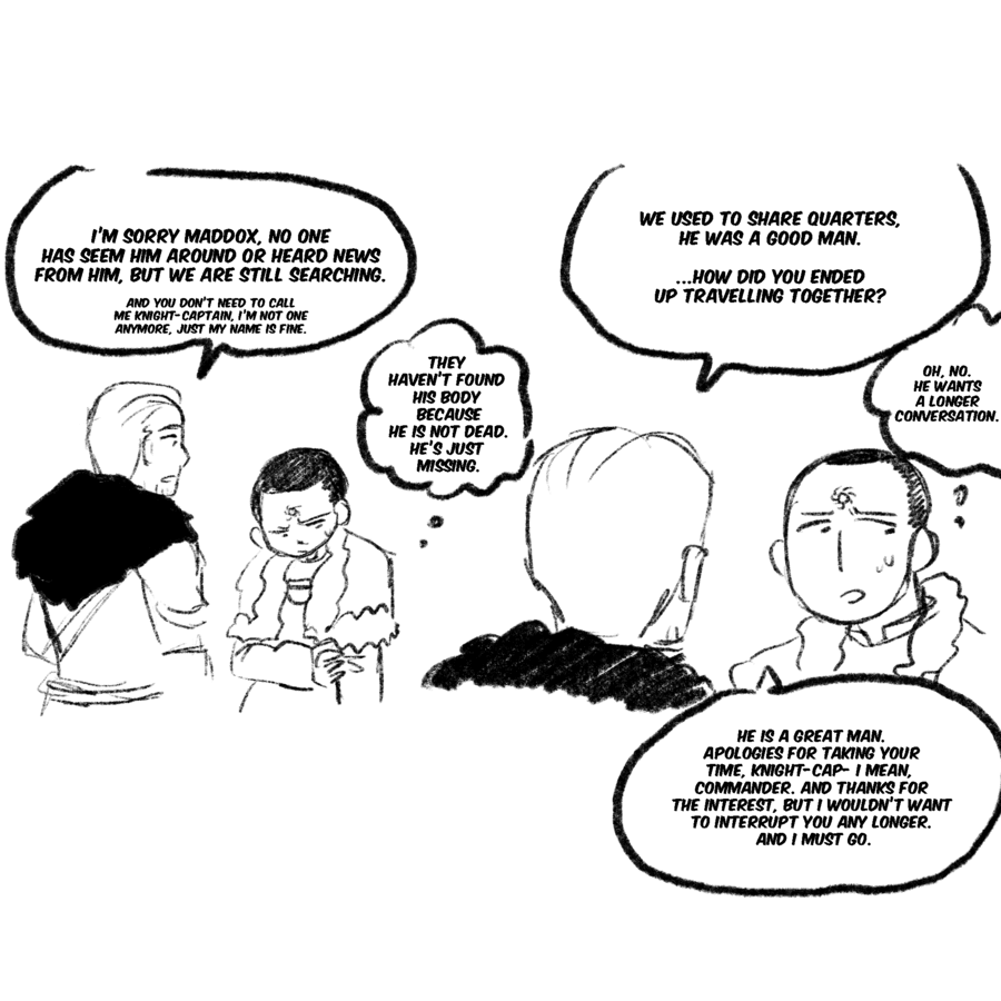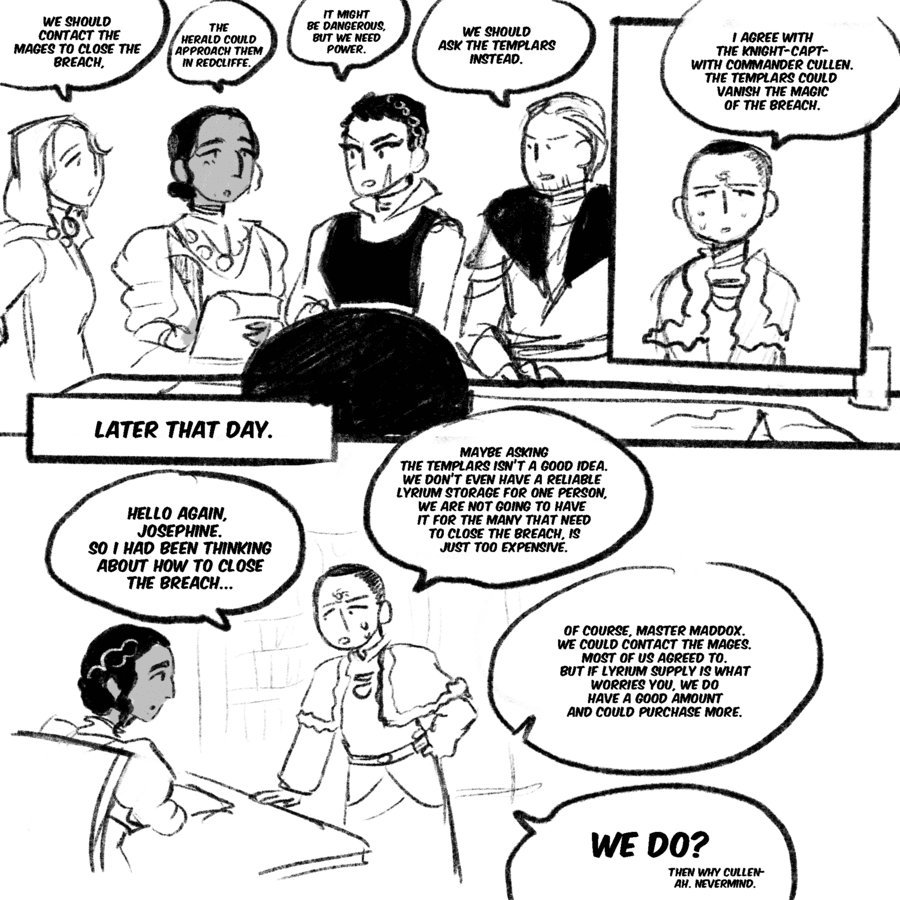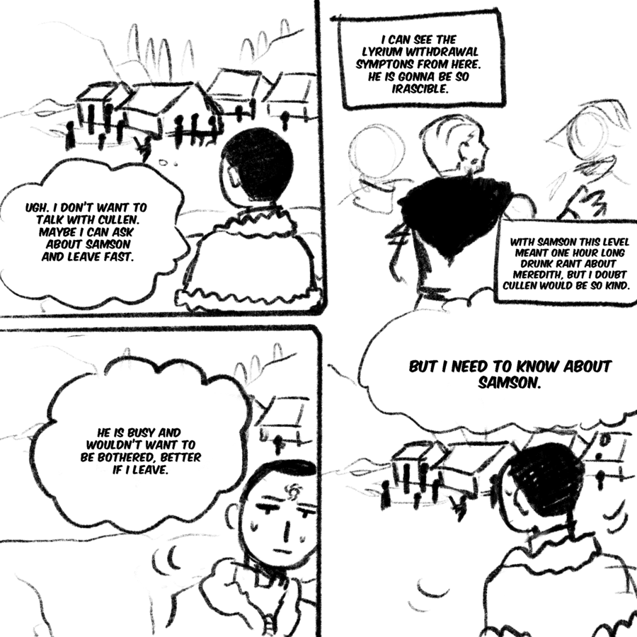 A comic exploring tranquility and its cure in the world of dragon age, but also the relationship of Maddox and Samson and him with everyone in the inquisition.