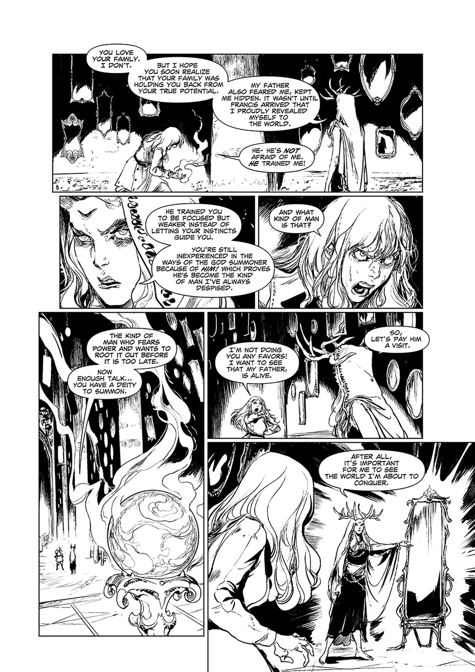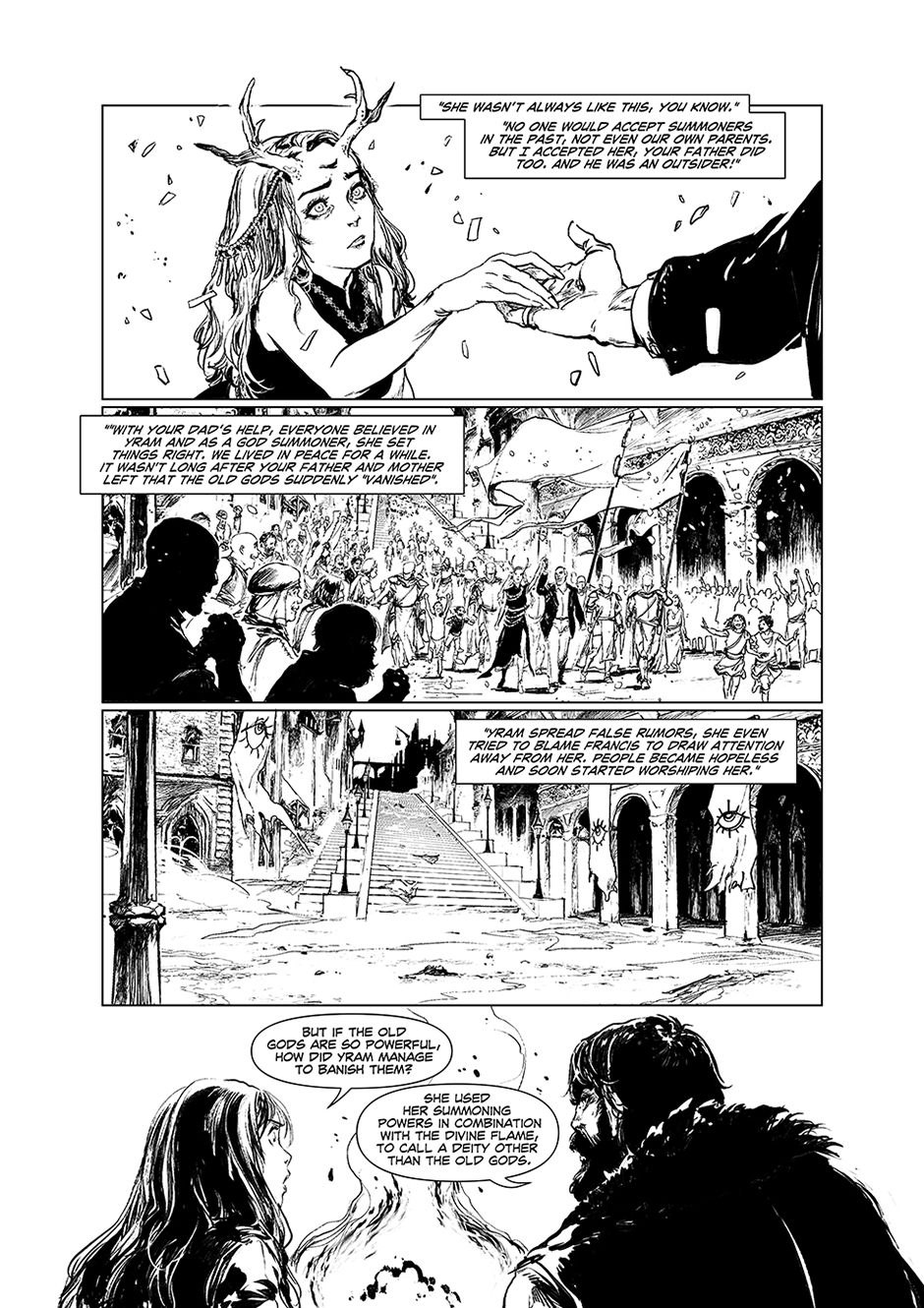 'God Summoner' follows Adelice Belmont, a girl with powerful abilities, and her journey to return to her family after being abducted by the ruler of a parallel realm named Yram. In her journey, she teams up with a resistance group known as the Infidels and together set off to bring back the Old Gods to bring an end to Yram's regime.
