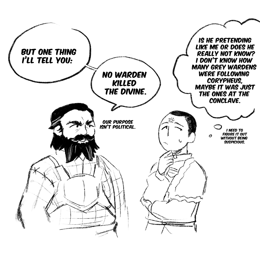 Fancomic and retelling of Dragon Age: Inquisition where Maddox, tranquil blacksmith who worked with Samson under Corypheus, ends up reversing his tranquility and becoming the Inquisitor.