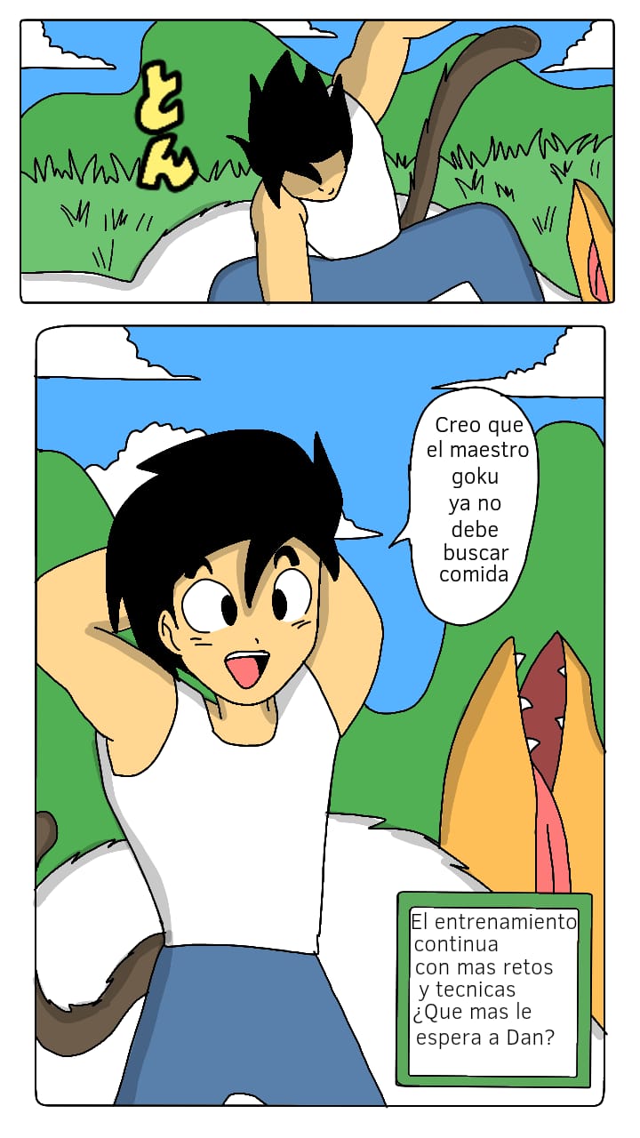 Durante su entrenamiento con Goku, Dan debera aprender la tecnica de vuelo pero durante este entrenamiento se acaba enfrentando a un enemigo depredador que piensa devorarlo para lo cual debera utilizar su recien aprendida tecnica de vuelo