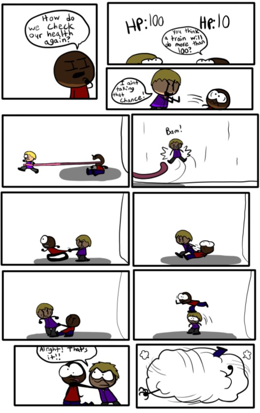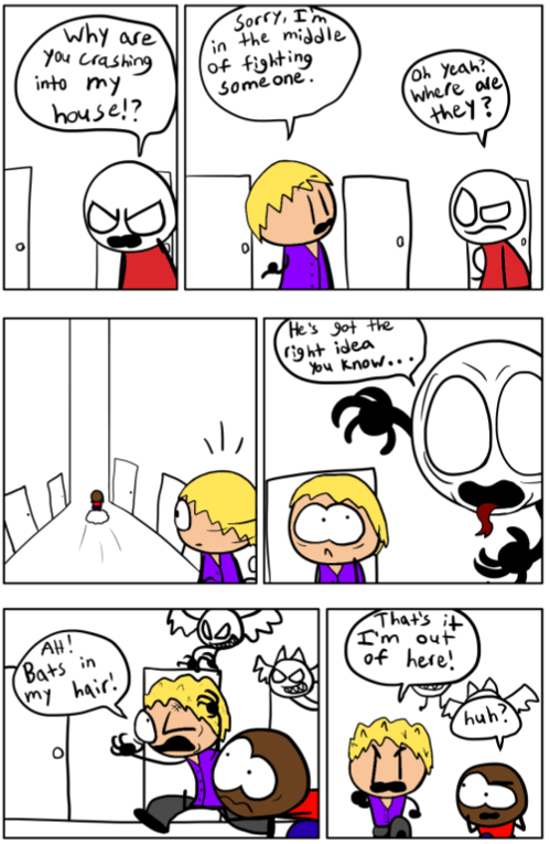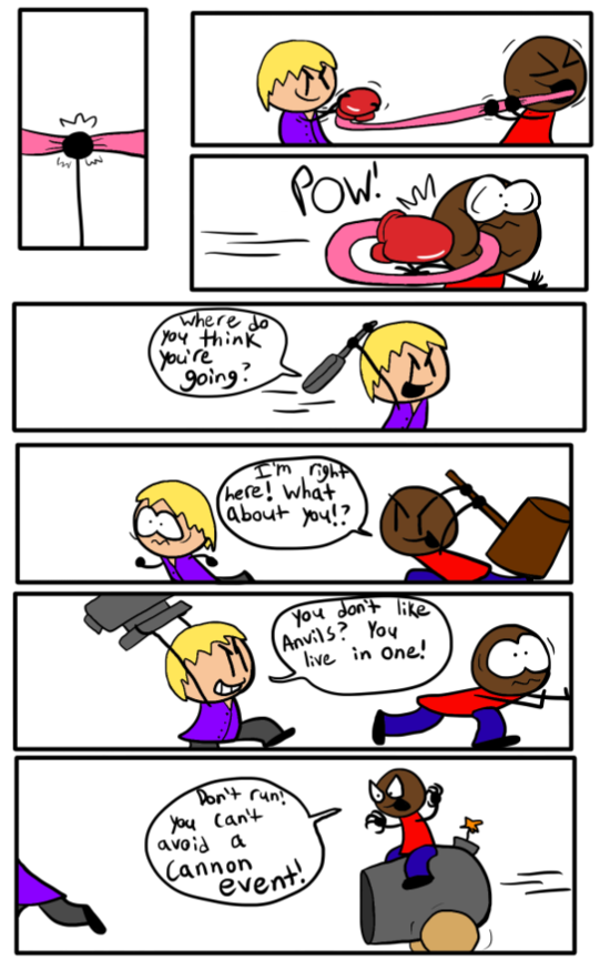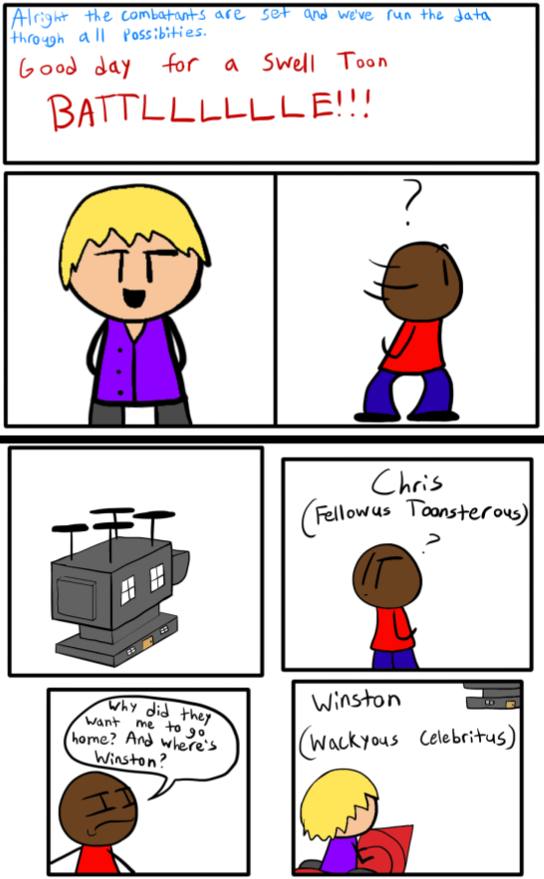 A mostly episodic comic series as video game characters come to life and live with a guy who wants to fulfill his dream as a toon. The seven of them will go on adventures, meddle with villains, and save the day every now and then. Of course, while causing as much chaos as possible, what did you think they were sane?