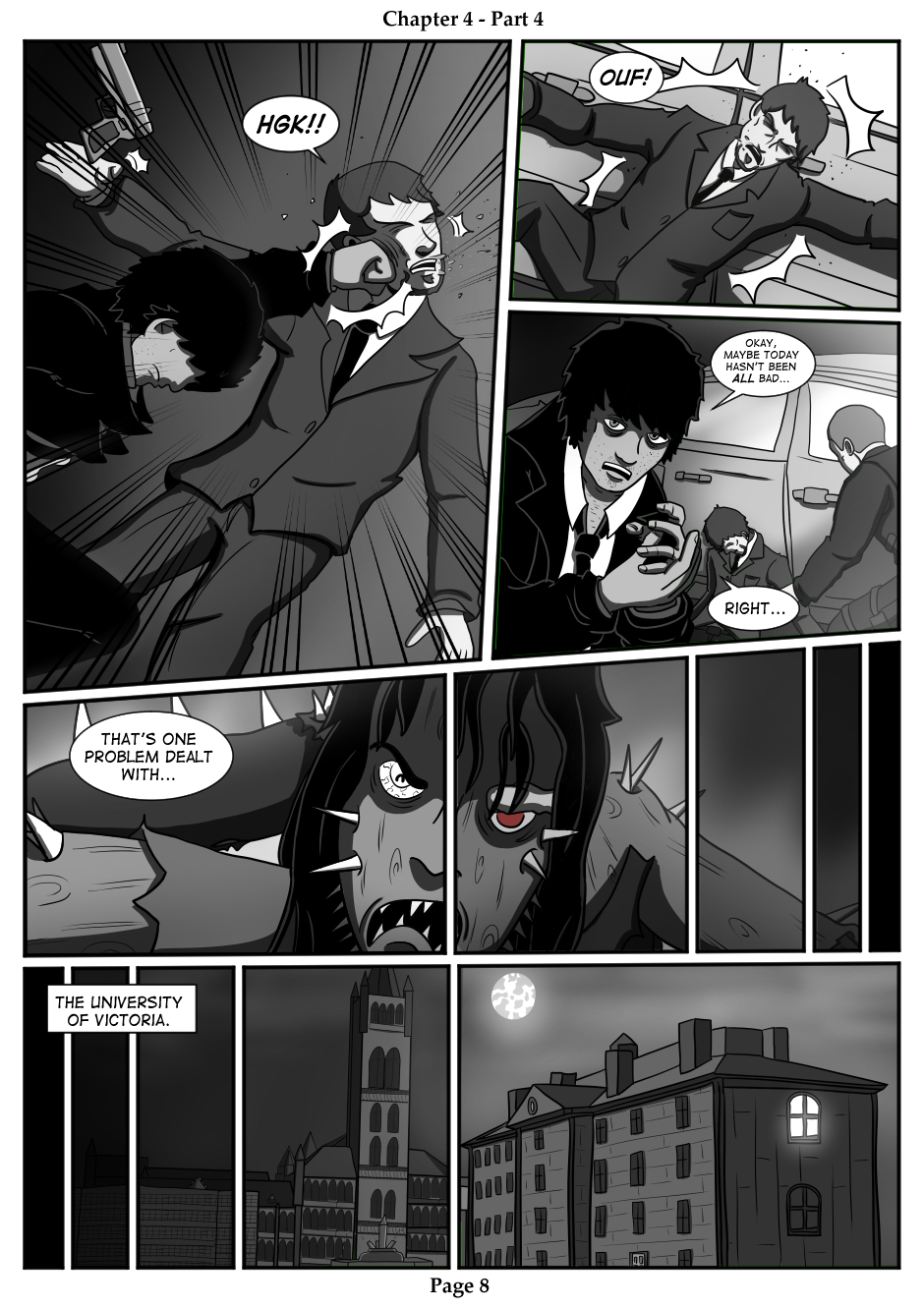 I did promise people would start punching each other in this issue. And because things got so exciting we scene change for a bit to Victoria University for some reason?
