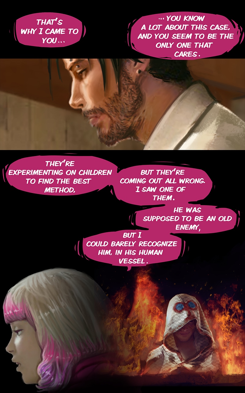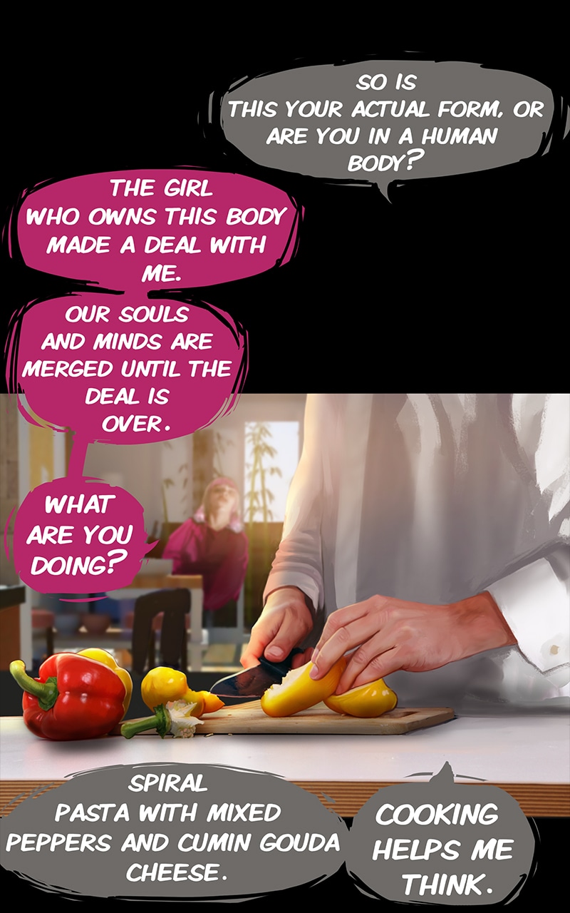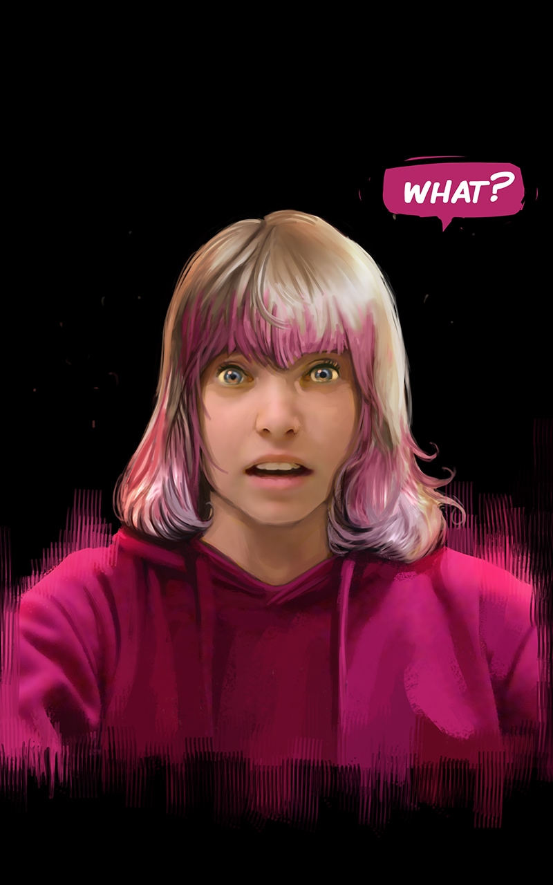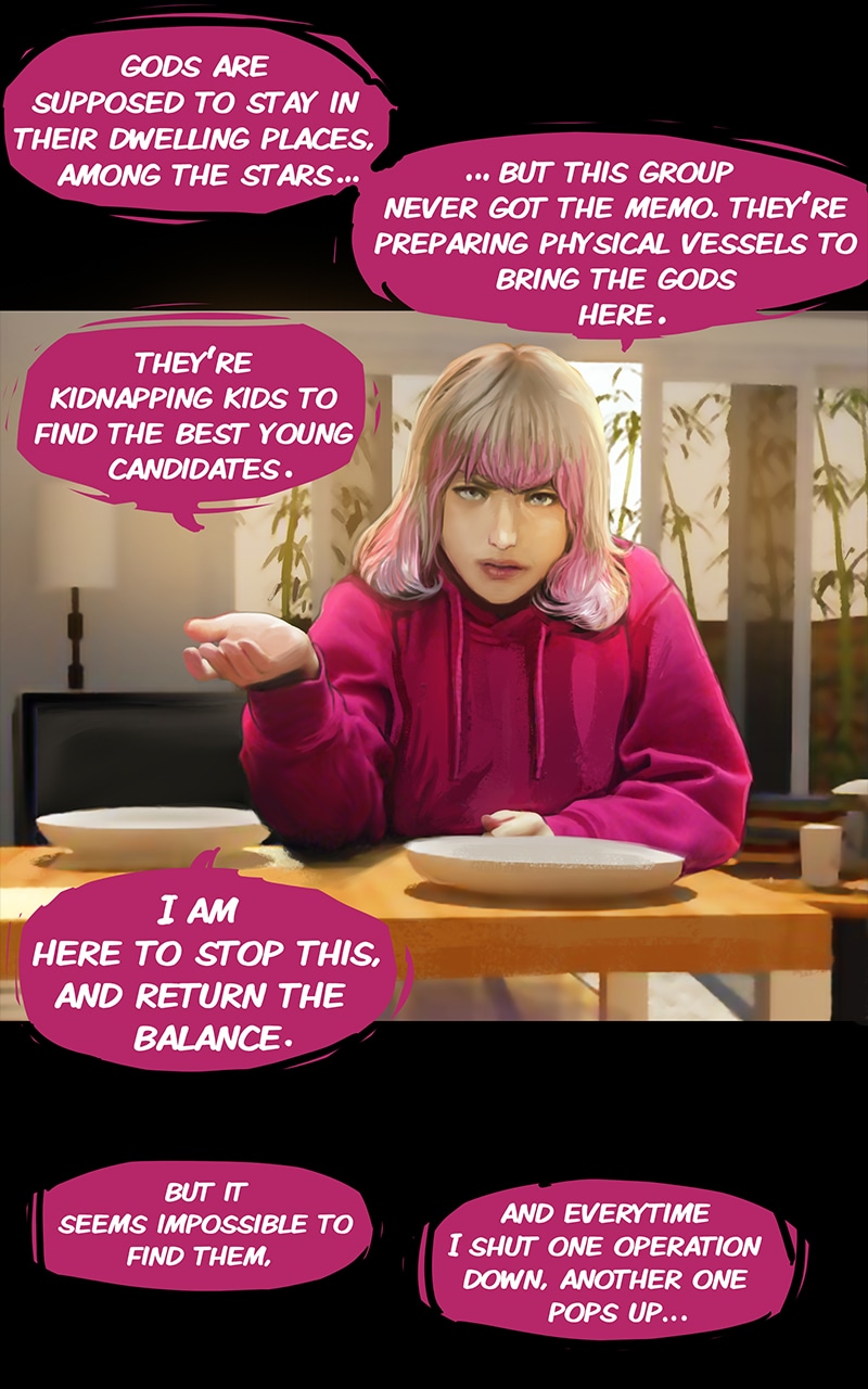 Does her human vessel have memories of school, or was she pulled into one of those projects too early in life? And who dyed the hair - the original girl or the god?