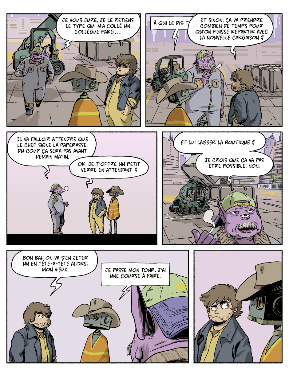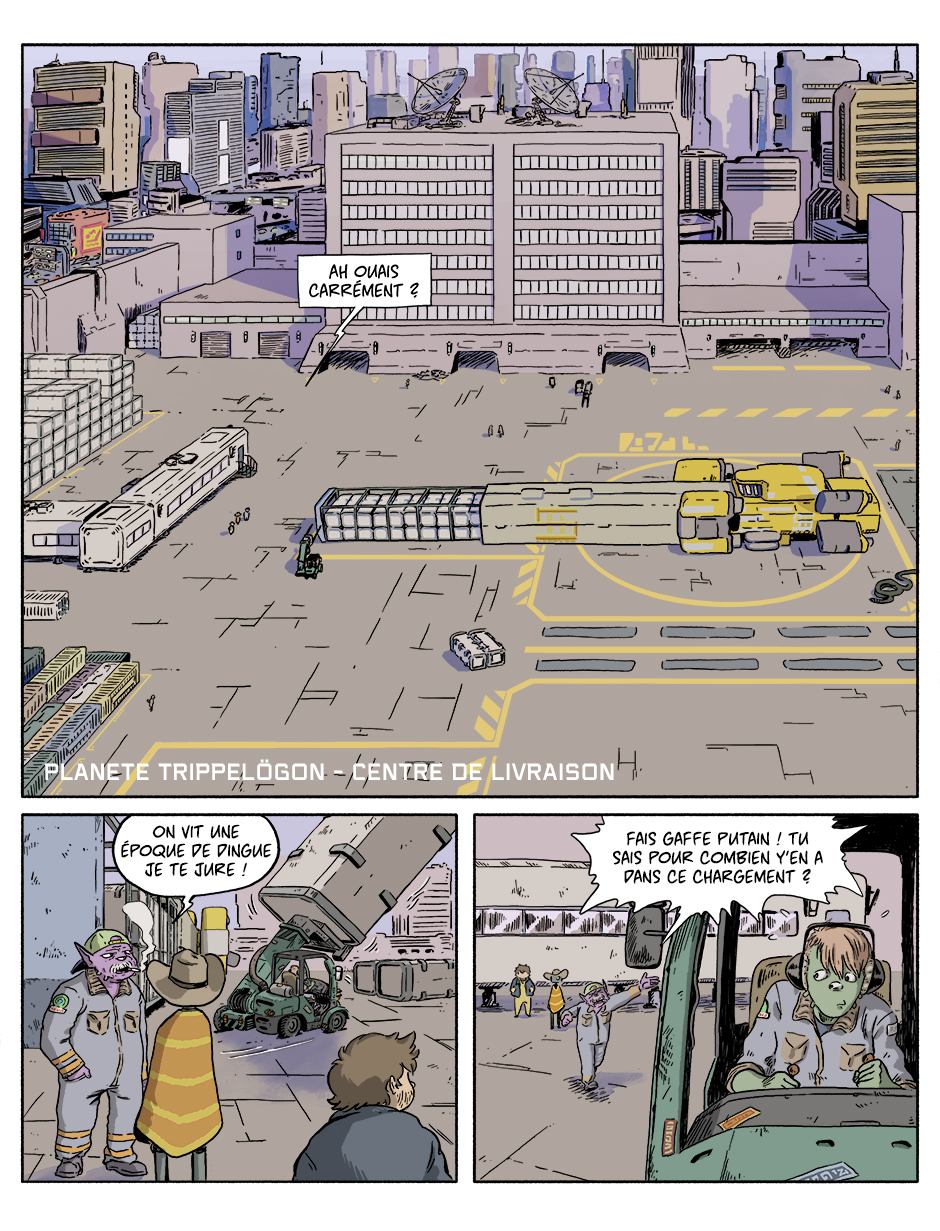 Axel et Wayne traversent la galaxie pour le compte de SolEx (Solar Express), compagnie de transport spatial de fret.