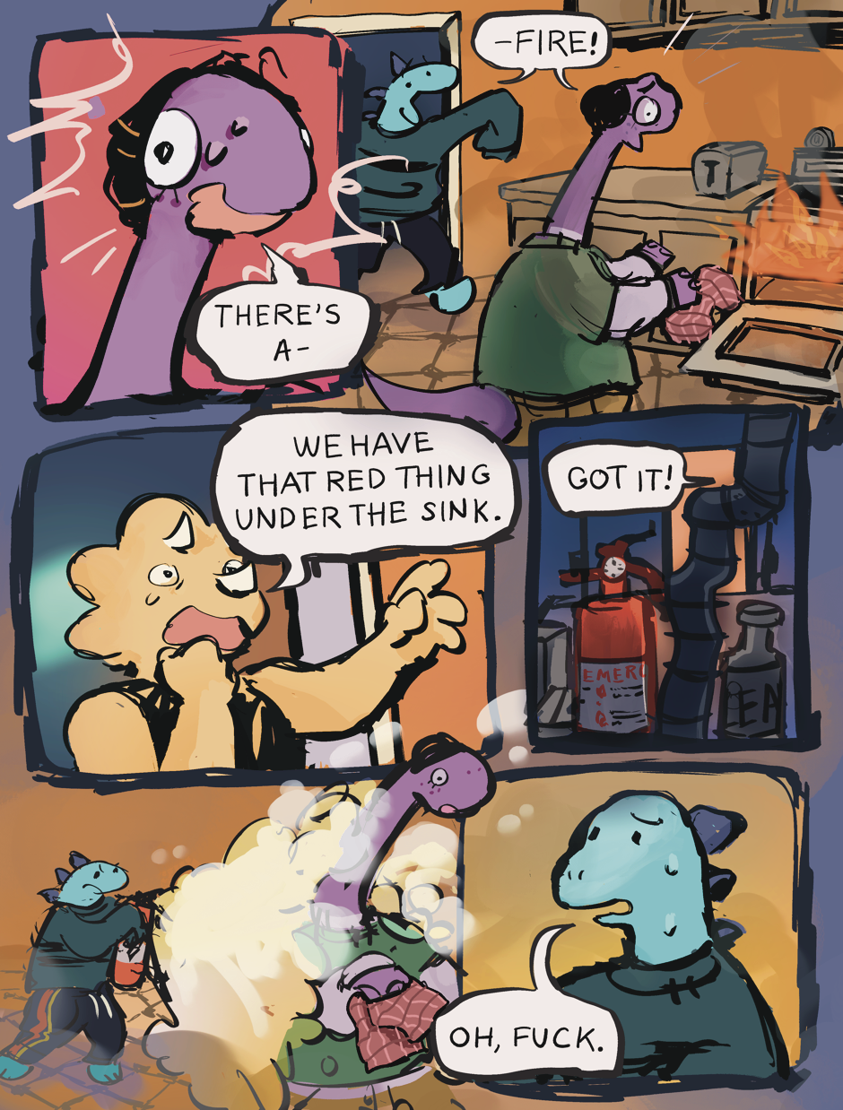 Roughly 66 million years ago, the dinosaurs knew the asteroid was coming. The end was near, and that truth was overwhelming; however one majungasaurus, triceratops, and brontosaurus still seek comfort in their last moments from one another. A mini comic about the vital importance of friendship, wether it be future, present, or prehistoric.