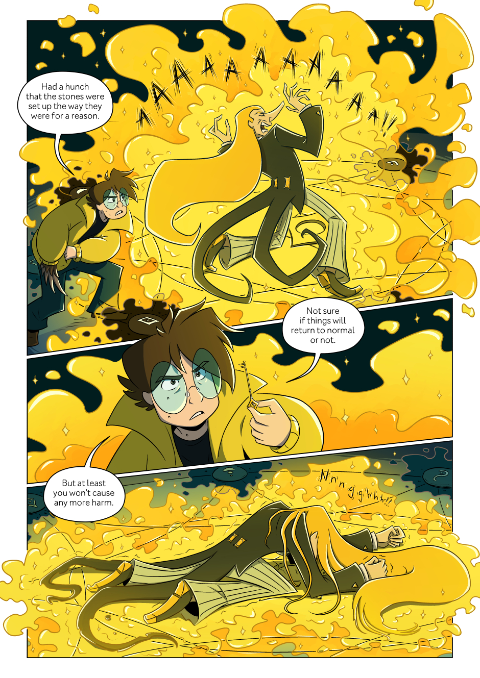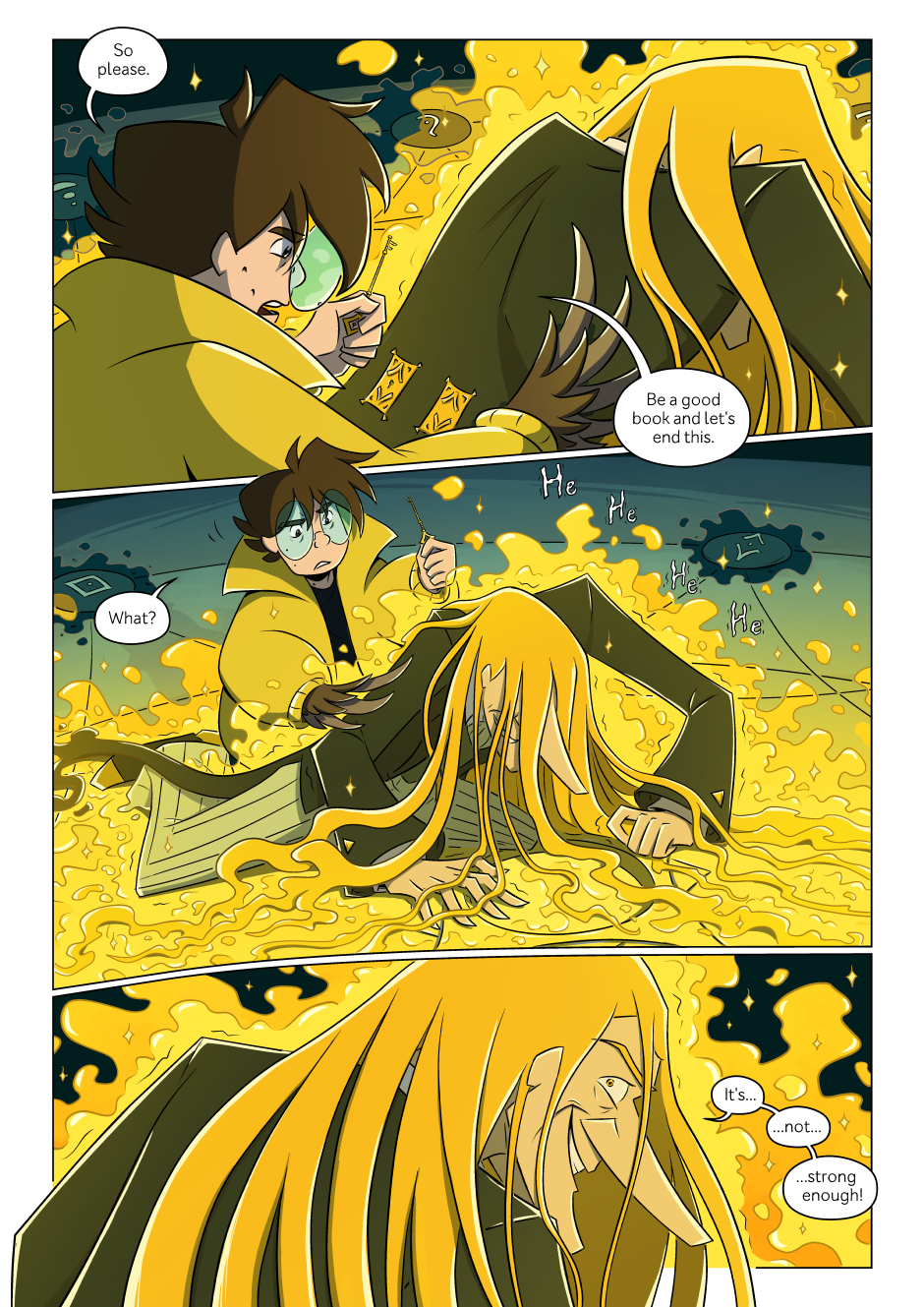 Uh oh. --- This page... was tricky. Had to really really push the limits of what I'm currently capable of. Really proud how it turned out though! I have had these scenes planned for a WHILE! Have the teeny tiny rough thumbnails in my sketchbook and boy those sketches are old! XD