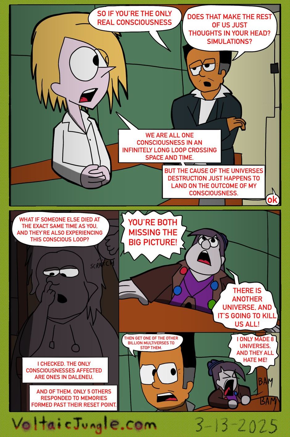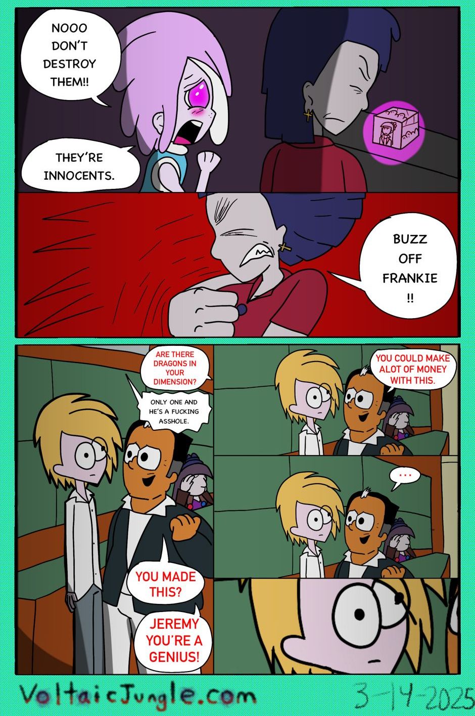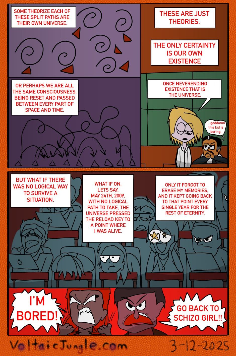 The hit early 2000’s cartoon continues churning out new adventures! Rebooted back to their iconic teenage selves, our six protagonists must cope with their renewed, seemingly endless existences. Watch these poor souls continue to entertain forever and ever and ever and ever and ever... Also available at www.voltaicjungle.com/free_falling