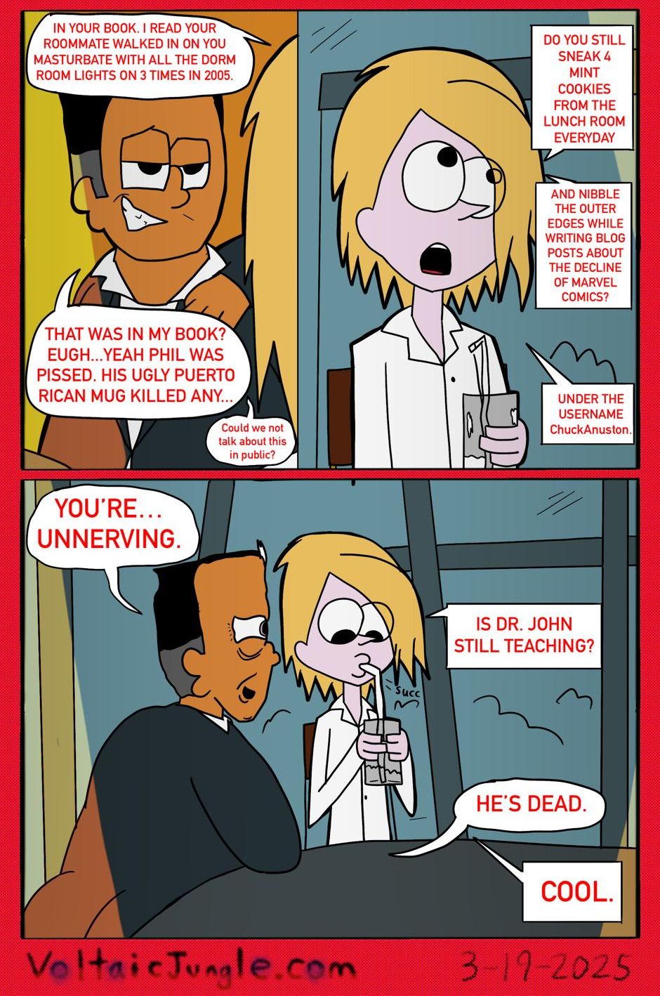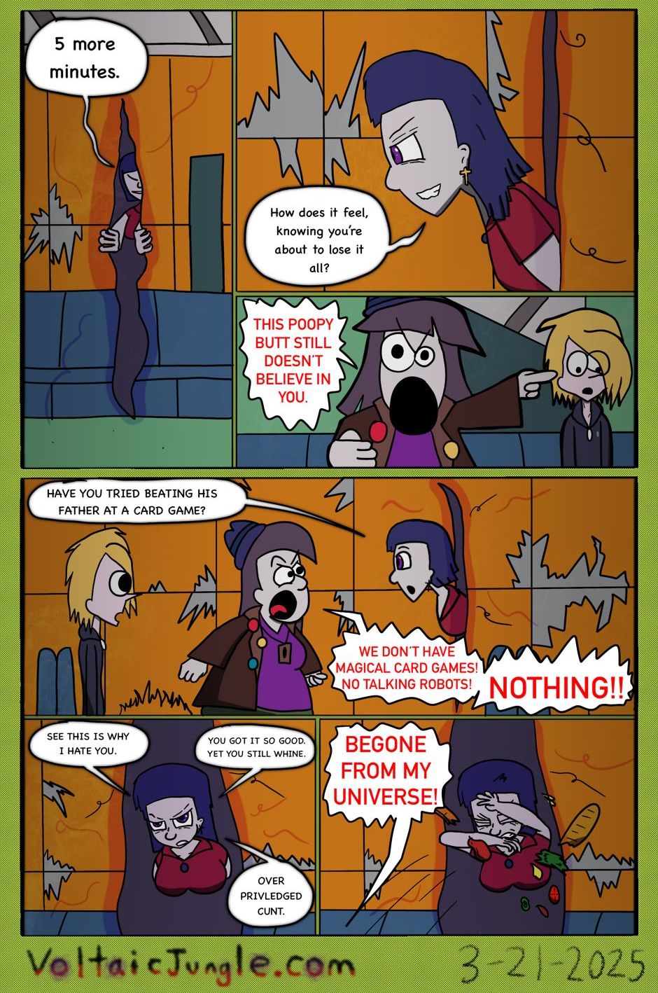 The hit early 2000’s cartoon continues churning out new adventures! Rebooted back to their iconic teenage selves, our six protagonists must cope with their renewed, seemingly endless existences. Watch these poor souls continue to entertain forever and ever and ever and ever and ever... Also available at www.voltaicjungle.com/free_falling