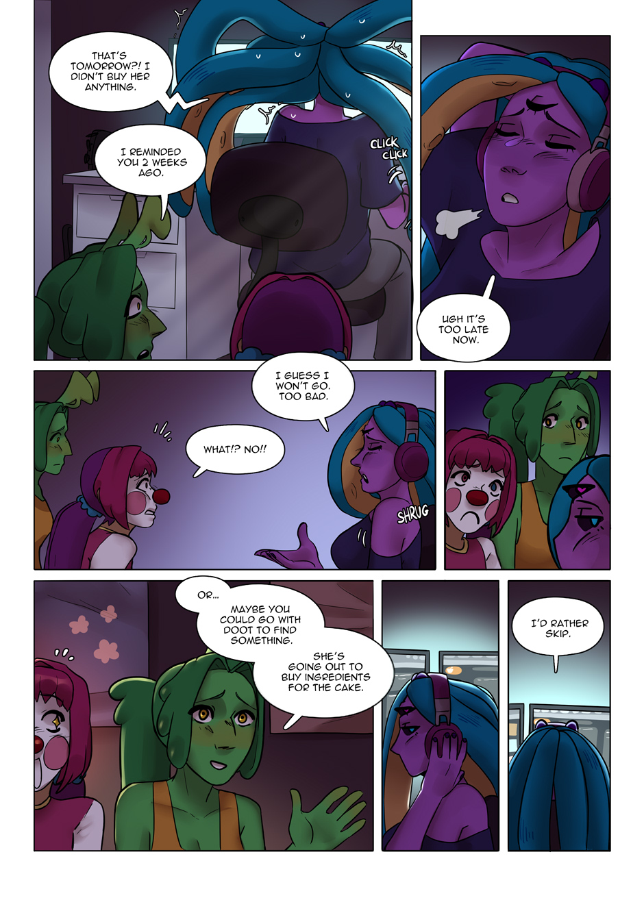 In a modern world filled with curses, Tenta, the unemployed octopi girl and Anti, the half-demon lawyer reunite after their relationship abruptly ended in their teenage years. Now as adults they find that nothing between them has changed, except that the drama and mystery surrounding their relationship only grew. Such misfortunes may include: a love triangle, family issues, defending your crush's toxic ex in a murder trial, getting stalked by an anonymous casino CEO, inheriting curses, descending from curses, evil women, clowns, and other common occurrences in a lesbian love drama. In a story where character growth is less about changing, and is more about learning to want to make a change, follow the two main characters as they overcome their unhealthy self images and defense mechanisms not just for each other, but eventually themselves. Her White Lies is a comic about about the fear and denial of facing the painful truth.