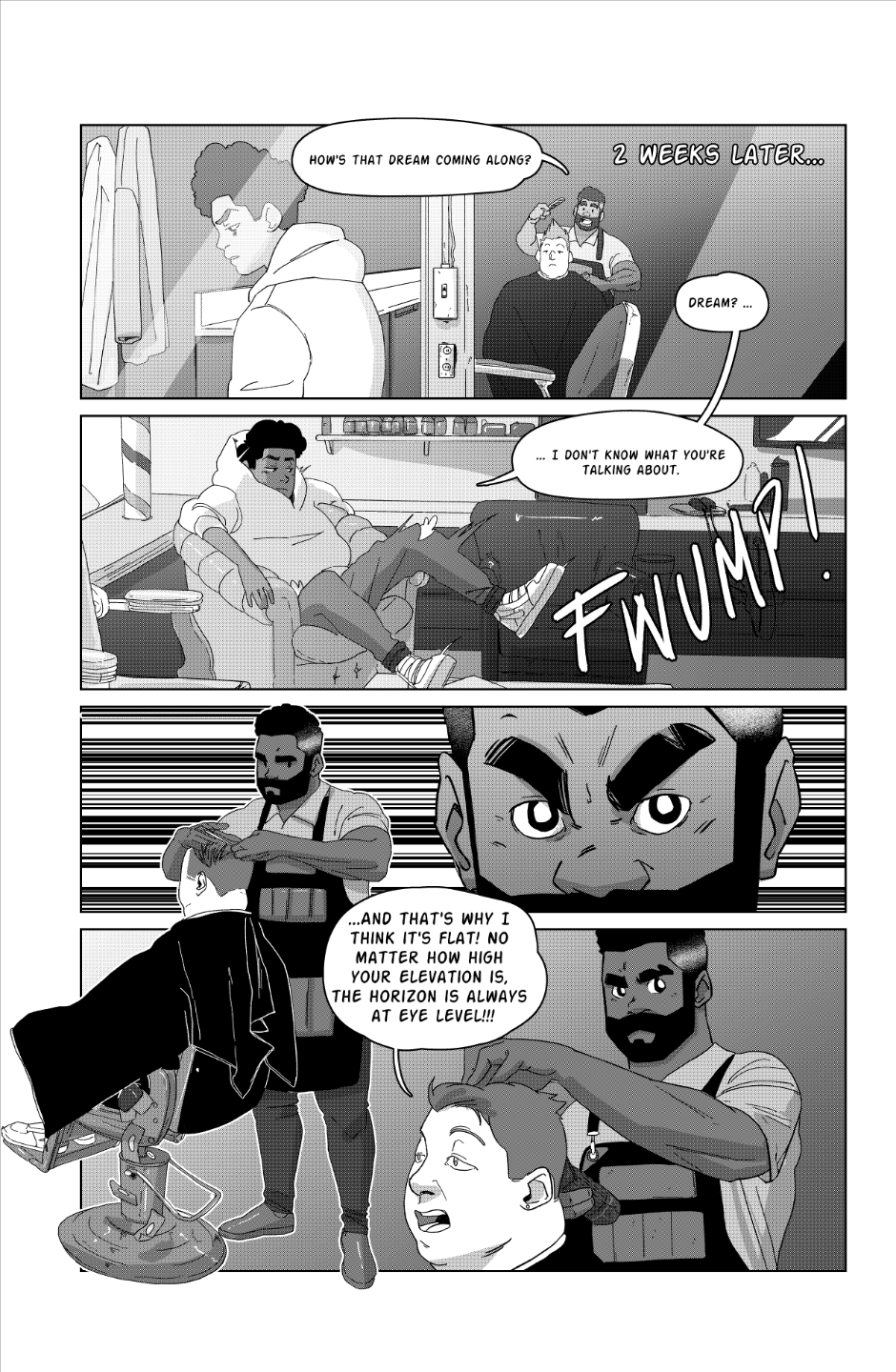 Is customer talking about the flat earth thing- I would make a horrible barber- smack him-