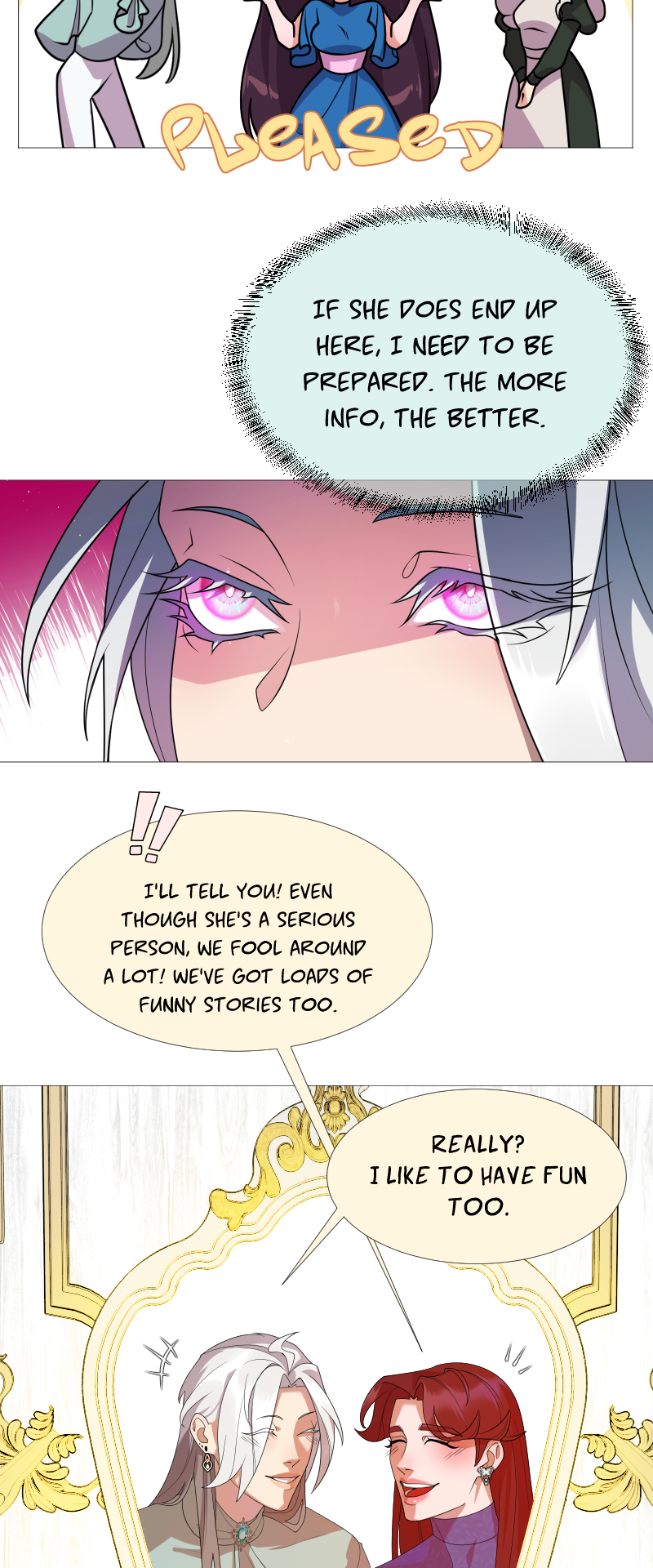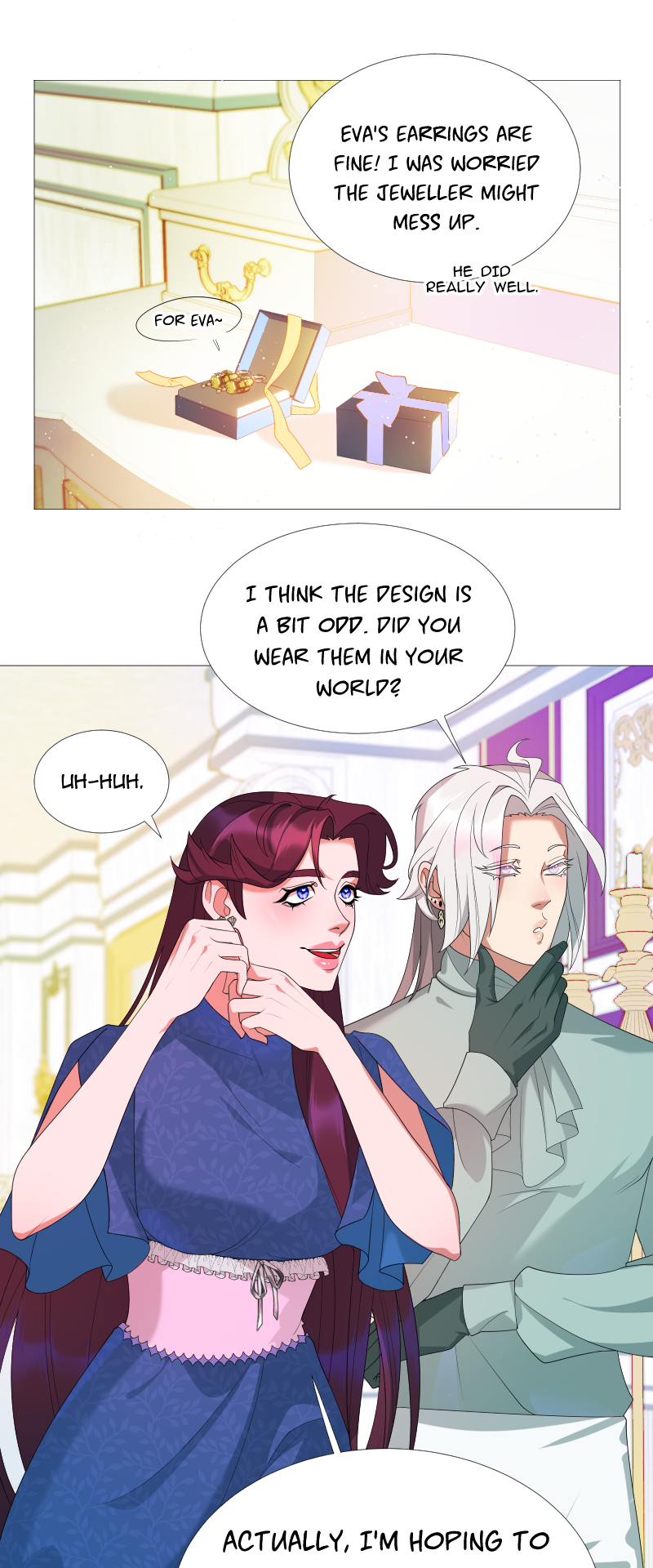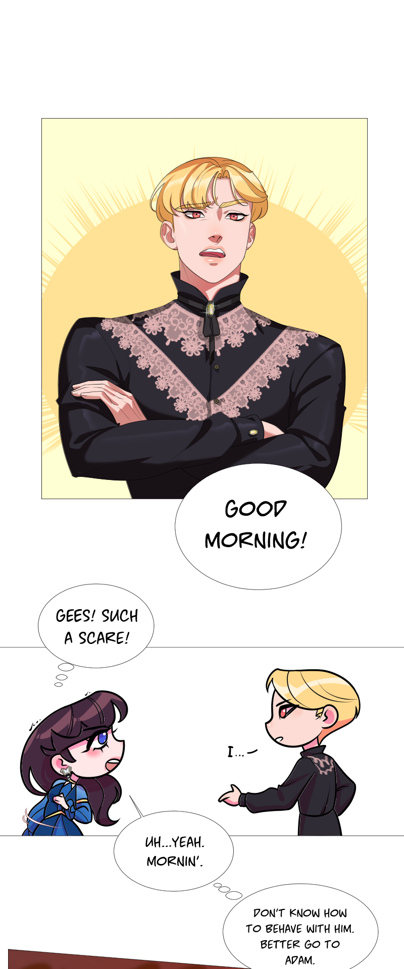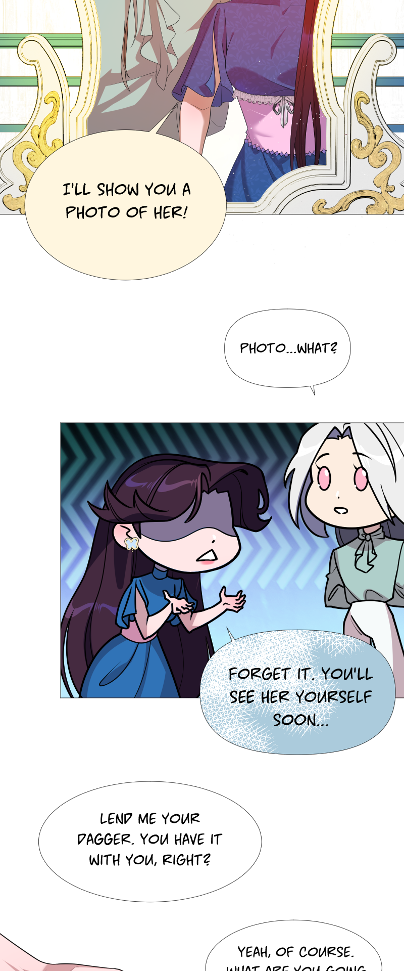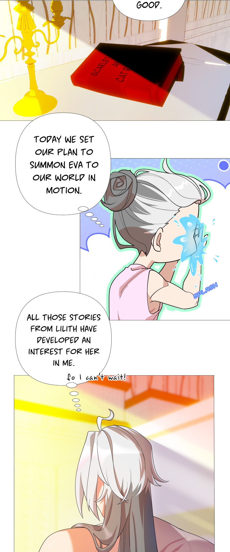 Lilith: "I read a short story about a princess. Is that corny? Yes, it was. Guess what happened next...I woke up with a dagger to my neck. The prince is plotting against me, and the church is happy to have a new saint. I'm facing death and..."