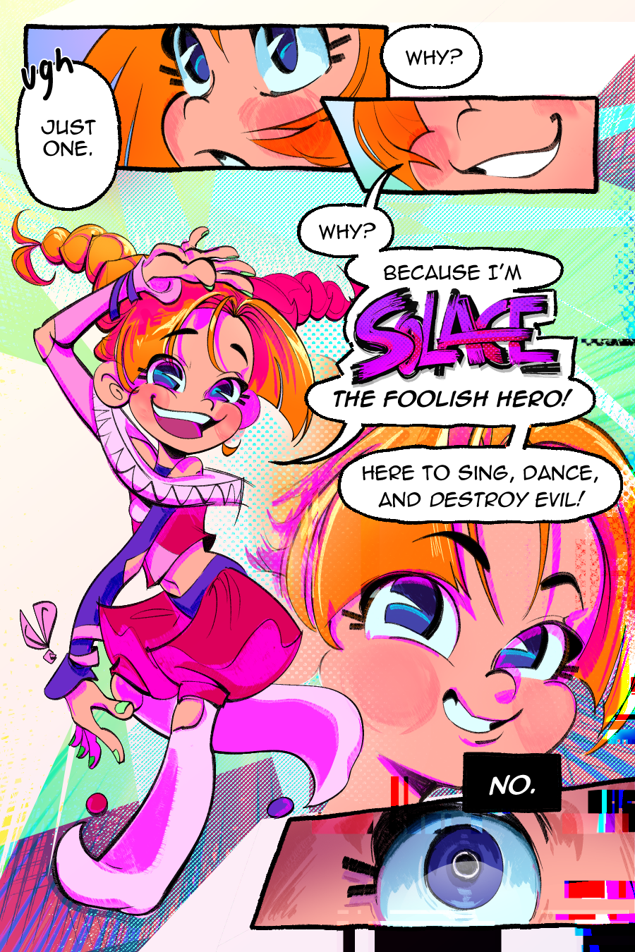 "Solace the Foolish Hero! Here to sing, dance, and destroy evil!"
