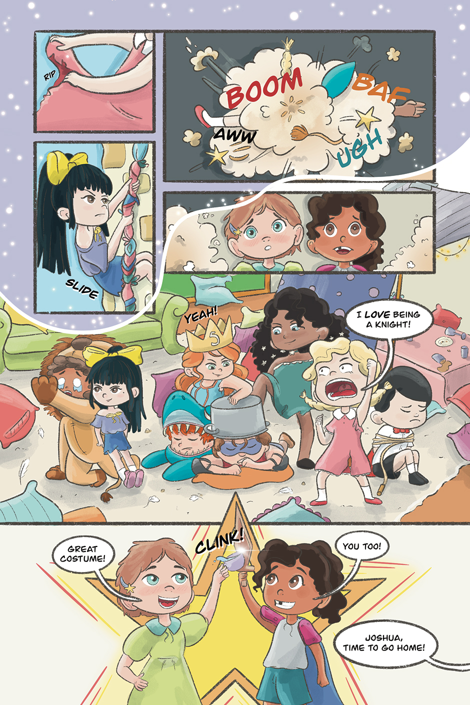 Joshua shows up as a princess at a birthday party. Not everyone is thrilled about his dress, until the castle comes under attack.