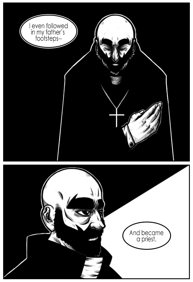 Aliens Zealot is a short narrative, a fan comic based off of the Alien franchise. Father Noah, a priest who travels from world to world spreading the word of God, a lie he says. But when he and his crew come to a new planet, he realizes the God that he believes in, truly is real.