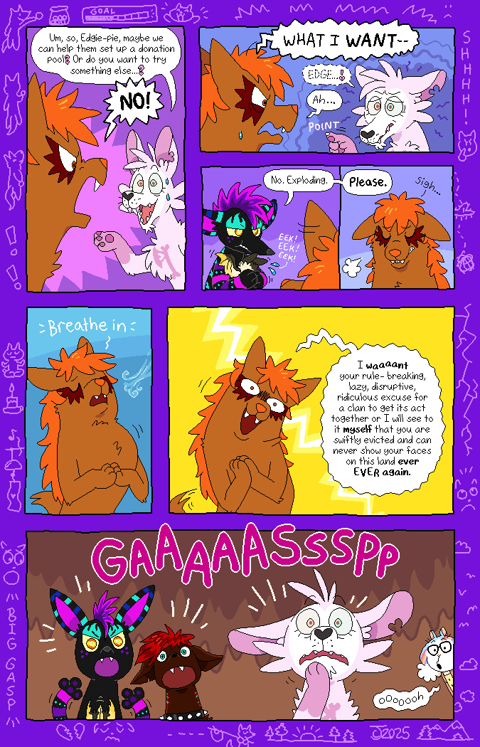 Most of the character designs were bought (adopted) from children on DeviantArt, resulting in a colorful cast of cats and dogs! The comic was made to be a love-letter to the creative minds of these kids. Credits to the original designers will be in the page description as they appear. The comic is all-ages.
