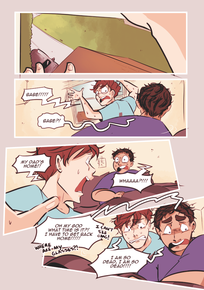 Content warnings: profanity, innuendos and characters talking about sex, some references to underage drinking, discussion of bullying/self-harm/substance abuse/alcoholism/mental illness, and the graphic representation of anxiety/panic attacks. Other topics include death, emotional/verbal abuse, and therapy.