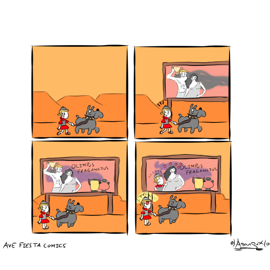 Ave Fiesta es un cómic histórico de temática militar que muestra la rutina de un ejército romano asentado en la provincia de Hispania, en la península Ibérica. A su vez, esta tira cómica recrea numerosos hechos históricos de la historia romana que han pasado a la posteridad como las campañas de Julio César en las Galias o la relación entre Cleopatra y Marco Antonio, la historia de amor más famosa de la historia, con anacronismos puestos a propósito para dar una visión distinta del Imperio Romano.
