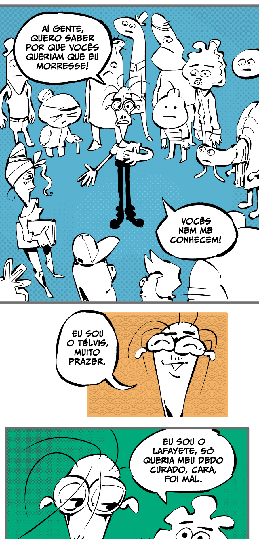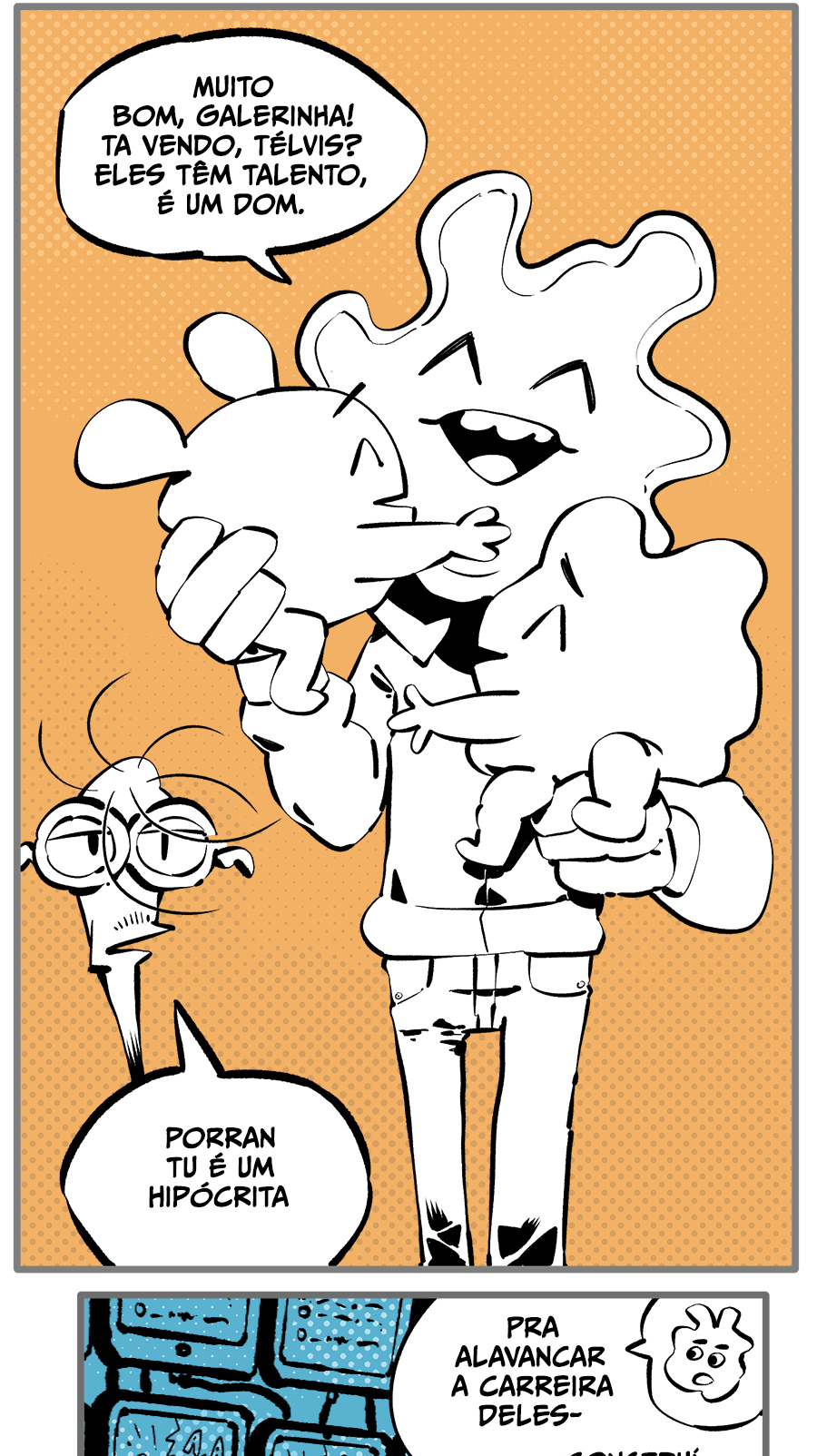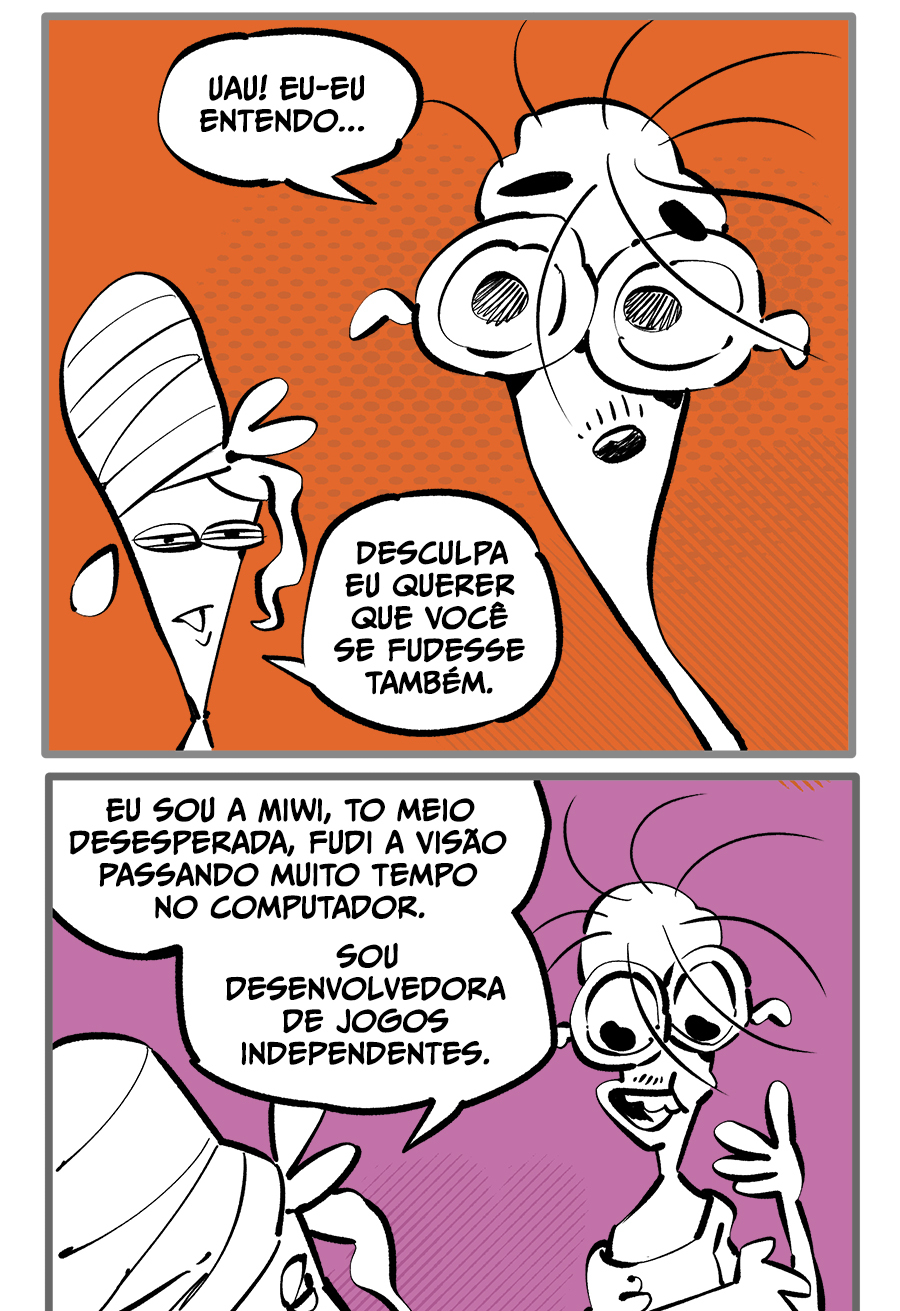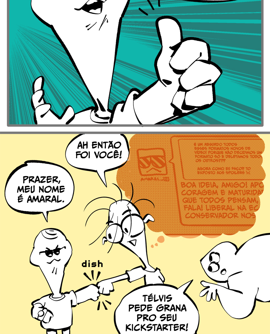 Entre empregos humilhantes, diarreias evangélicas, spoilers violentos, coaches do tempo e síndicos fascistas, Télvis contará com seu amigo Dark e com a misteriosa Câmera para fazer desse mundo intestinal um lugar menos nojento. Não no sentido higiênico, claro.