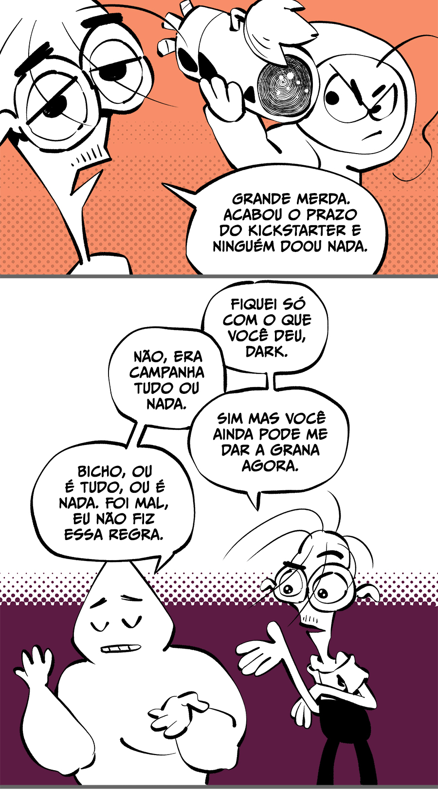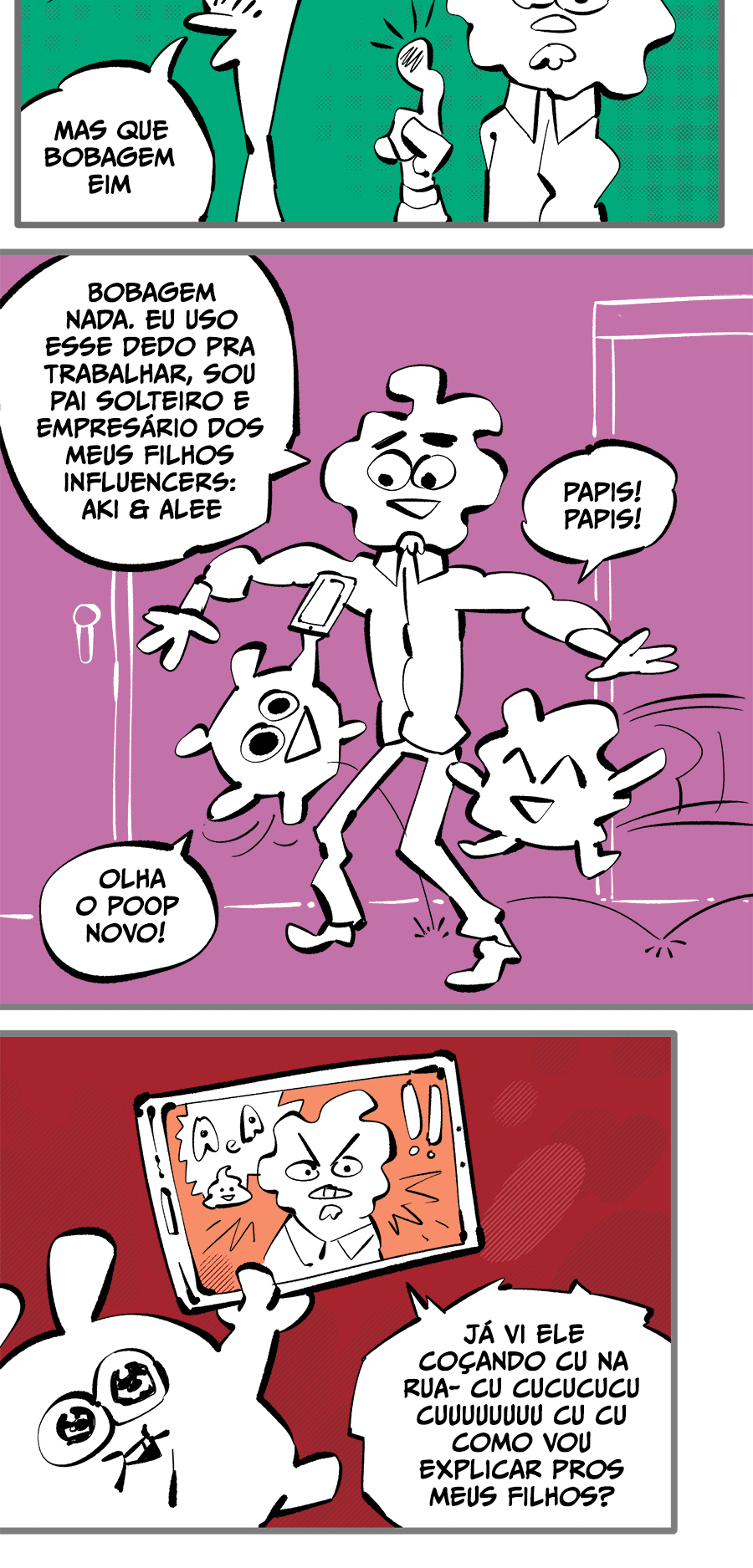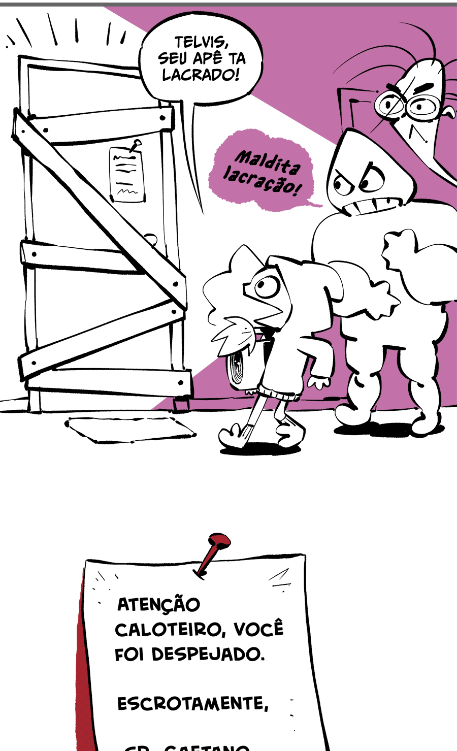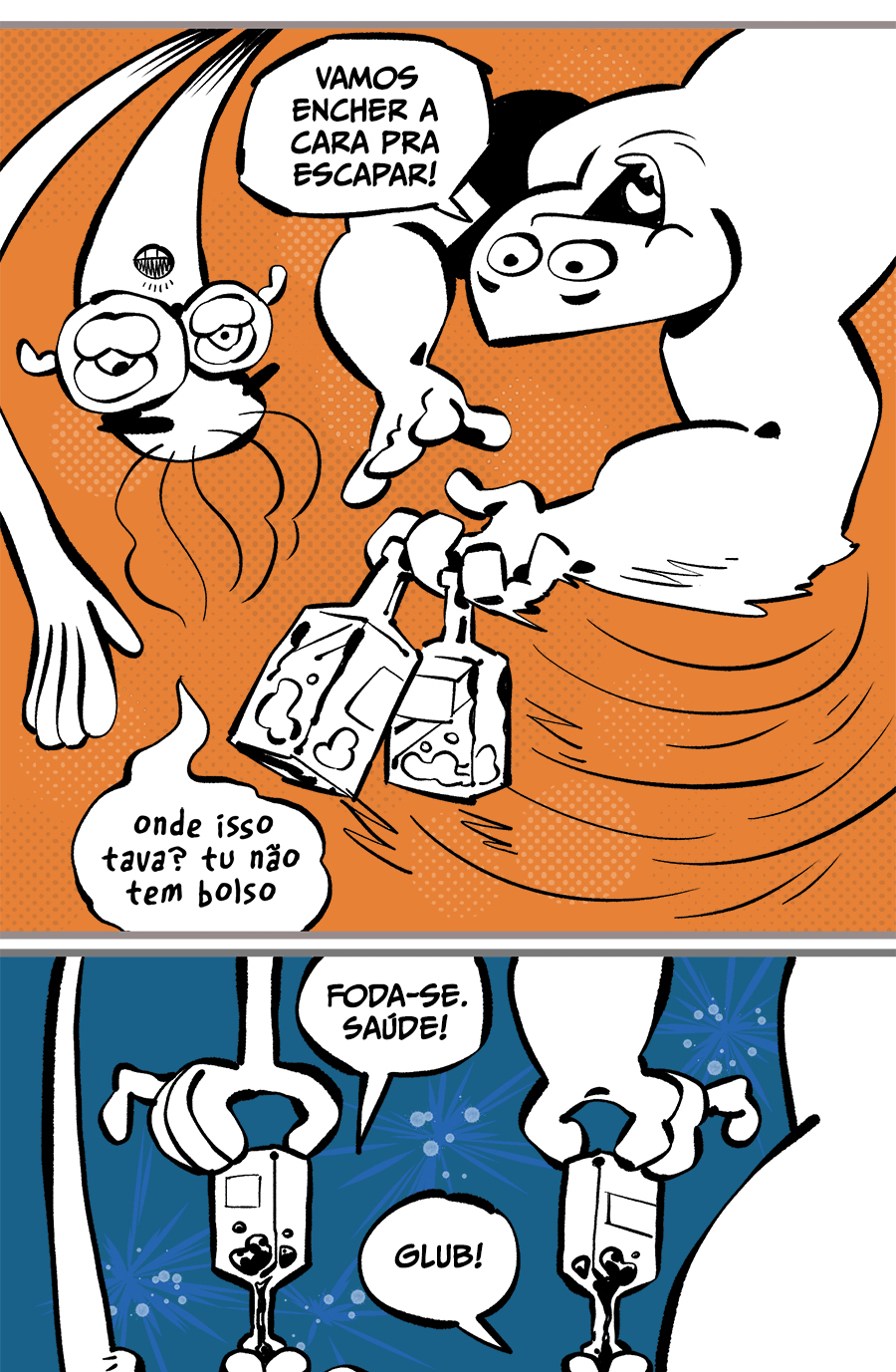 Entre empregos humilhantes, diarreias evangélicas, spoilers violentos, coaches do tempo e síndicos fascistas, Télvis contará com seu amigo Dark e com a misteriosa Câmera para fazer desse mundo intestinal um lugar menos nojento. Não no sentido higiênico, claro.