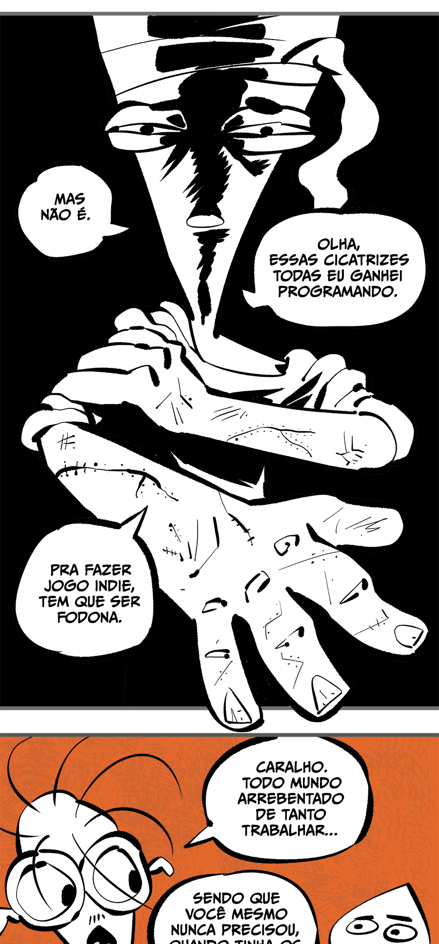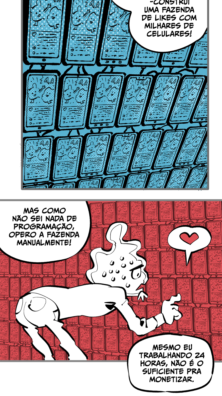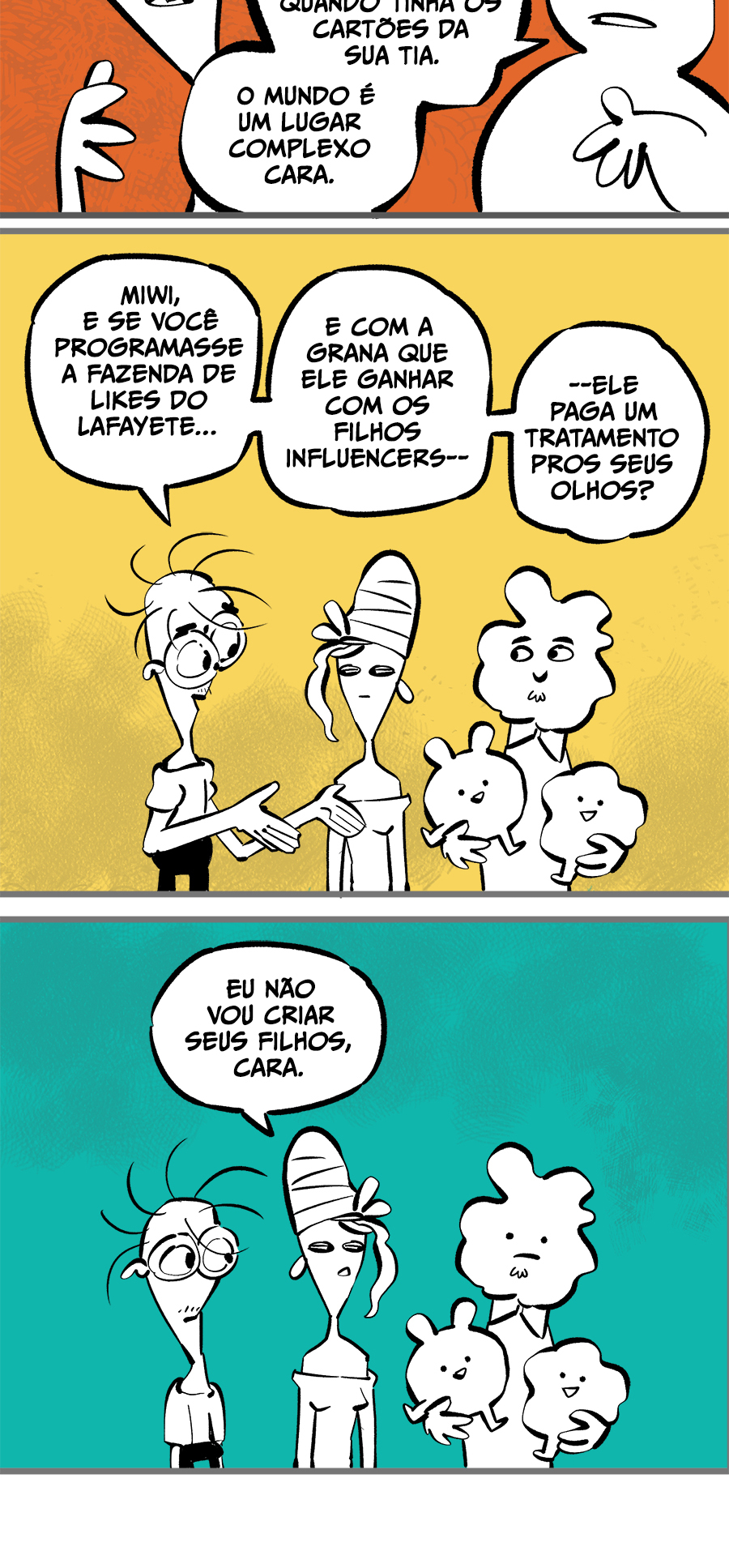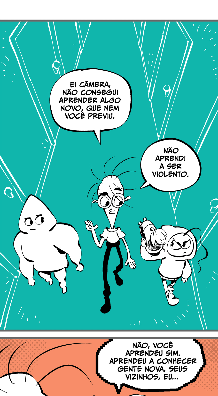 Entre empregos humilhantes, diarreias evangélicas, spoilers violentos, coaches do tempo e síndicos fascistas, Télvis contará com seu amigo Dark e com a misteriosa Câmera para fazer desse mundo intestinal um lugar menos nojento. Não no sentido higiênico, claro.
