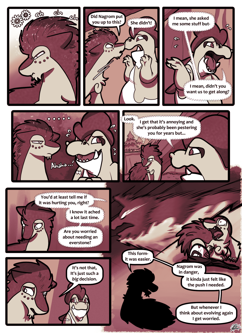 This scene was teetering on the brink of being punted to Extra status, but I decided it's important to leave in for a few reasons. Most predominantly being that Harold's struggles with evolution have been a long-running thing and I really kinda wanted to show how annoying it is for him to have it brought up repeatedly.
