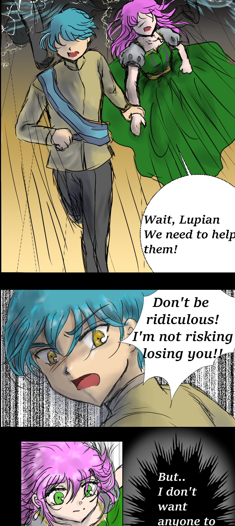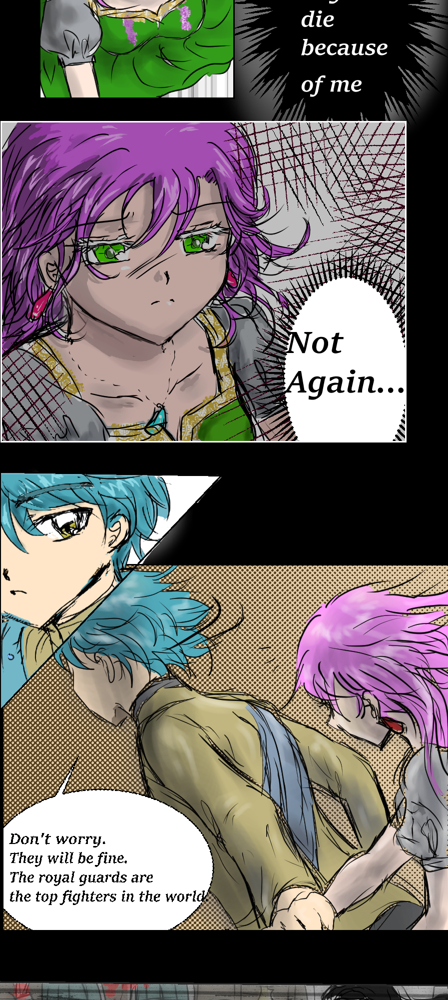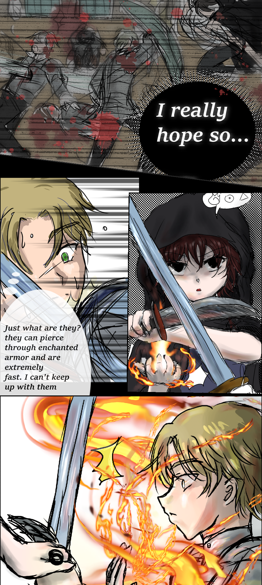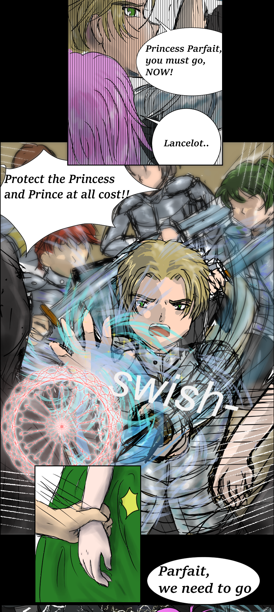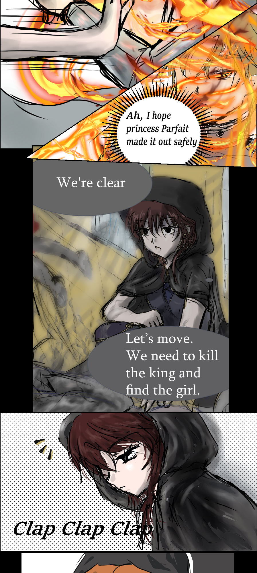 An ambush shatters the palace’s peace as masked assassins breach the royal ward, attacking from above with deadly precision. Parfait and Prince Lupian are forced to flee while royal guards hold the line. Parfait is haunted by guilt—memories of past losses—and torn between survival and the desire to fight. Despite the guards' valiant efforts, the intruders cut them down one by one.
