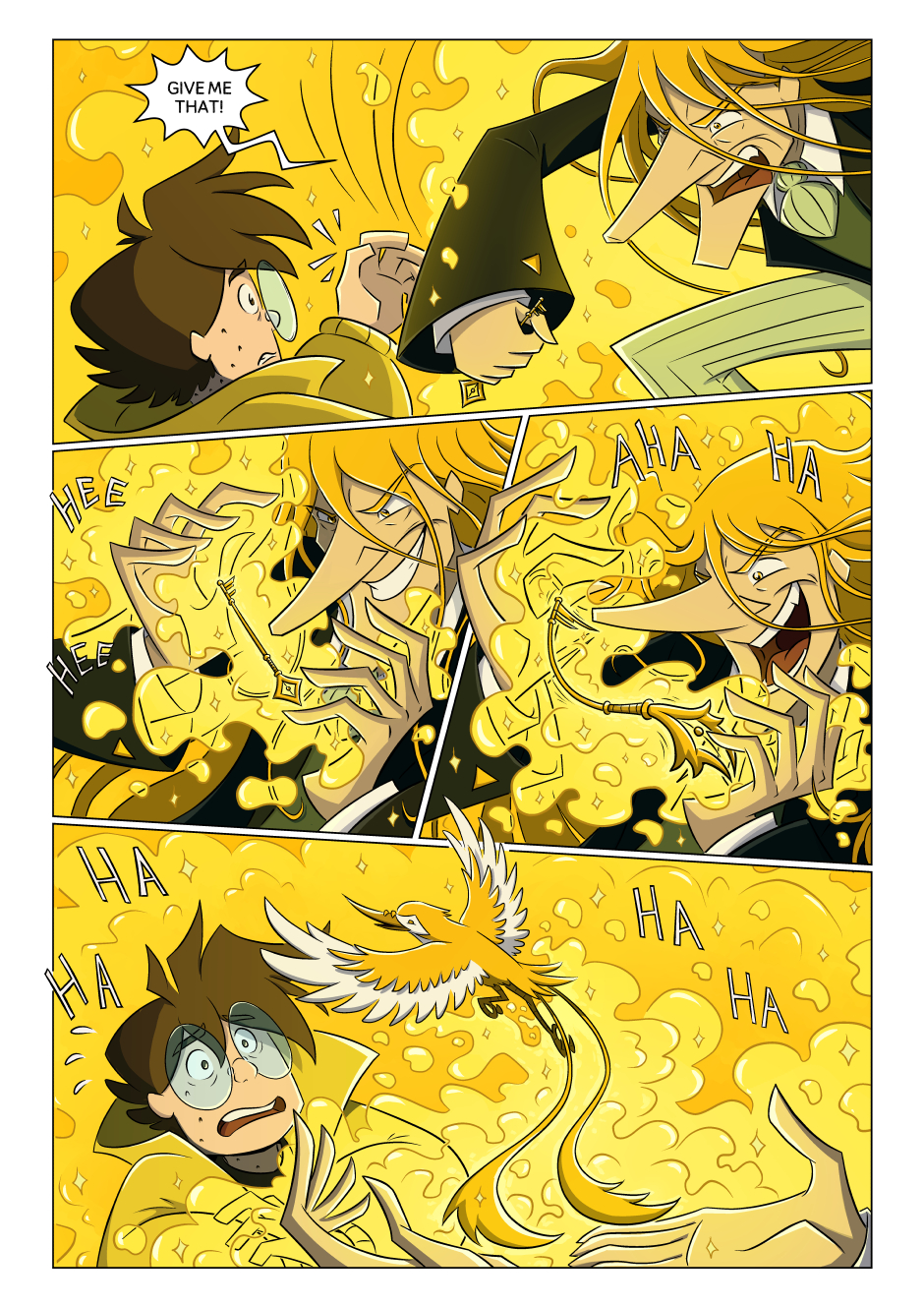 This page was... interesting... to work on. After first version of the line-art, I felt that Murmeli's hair was not quite wild enough. The second pass looked a bit weird with strands sticking out of his hair line, so added more hair tendrils to hide it. Then the third version also needed a couple of tweaks...