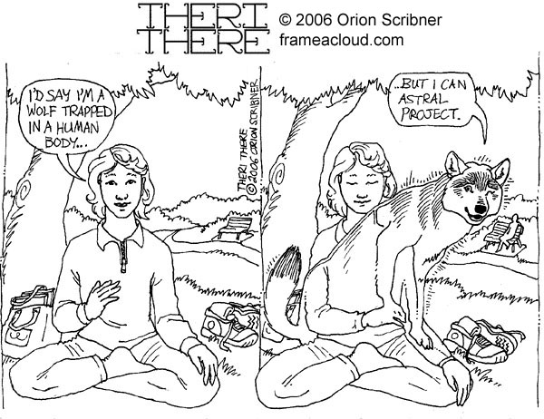 The person closes their eyes and projects their spirit in the form of a wolf. The wolf winks and says, “…But I can astral project.”