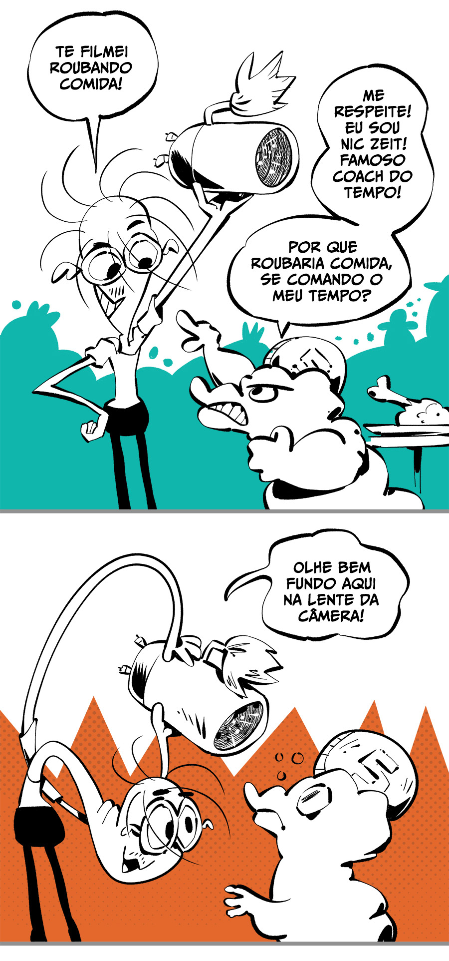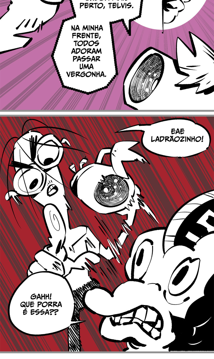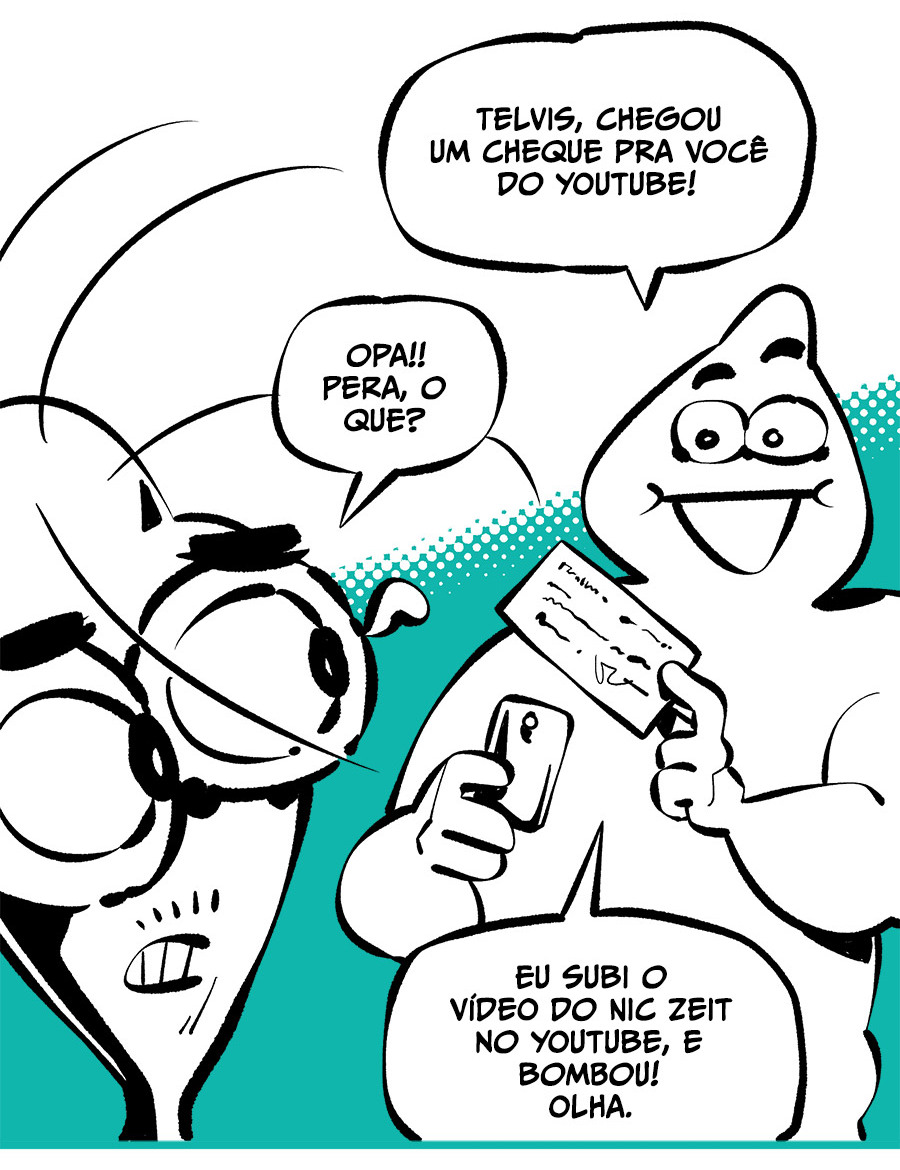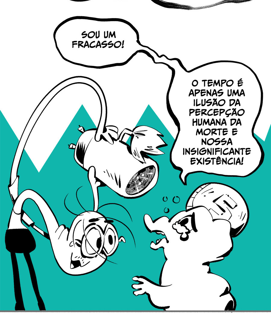 Entre empregos humilhantes, diarreias evangélicas, spoilers violentos, coaches do tempo e síndicos fascistas, Télvis contará com seu amigo Dark e com a misteriosa Câmera para fazer desse mundo intestinal um lugar menos nojento. Não no sentido higiênico, claro.