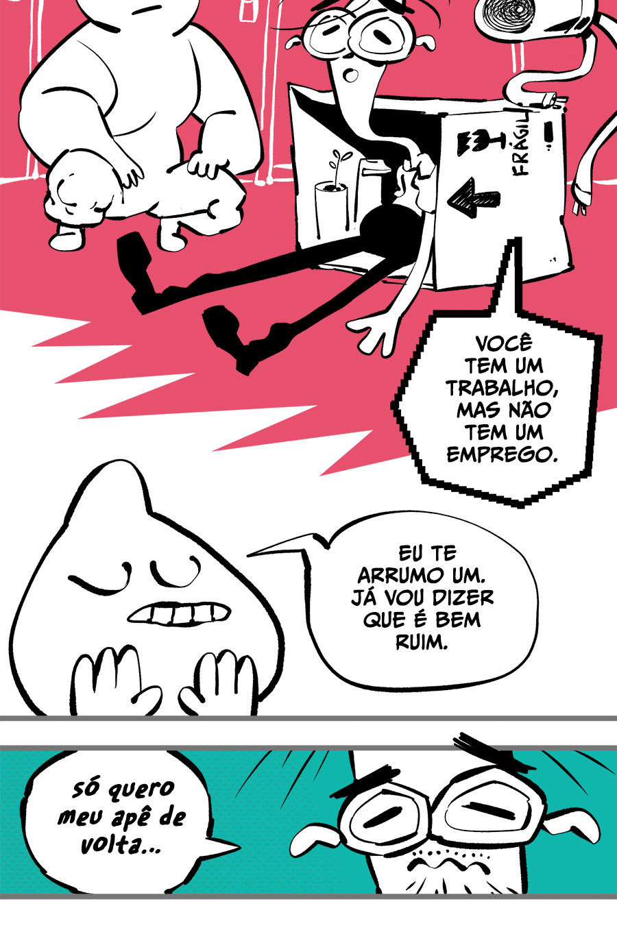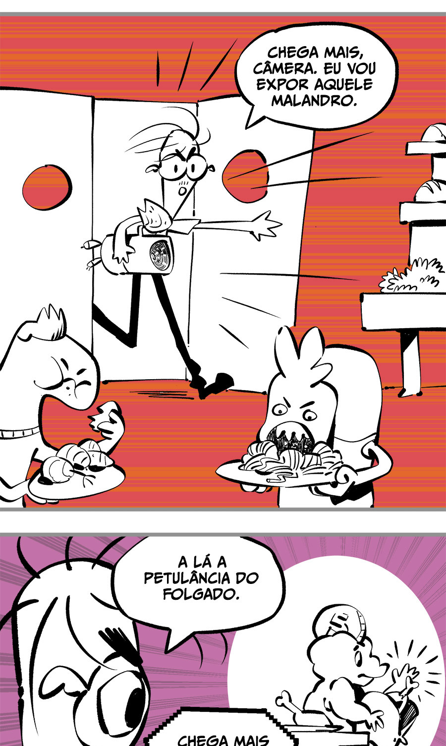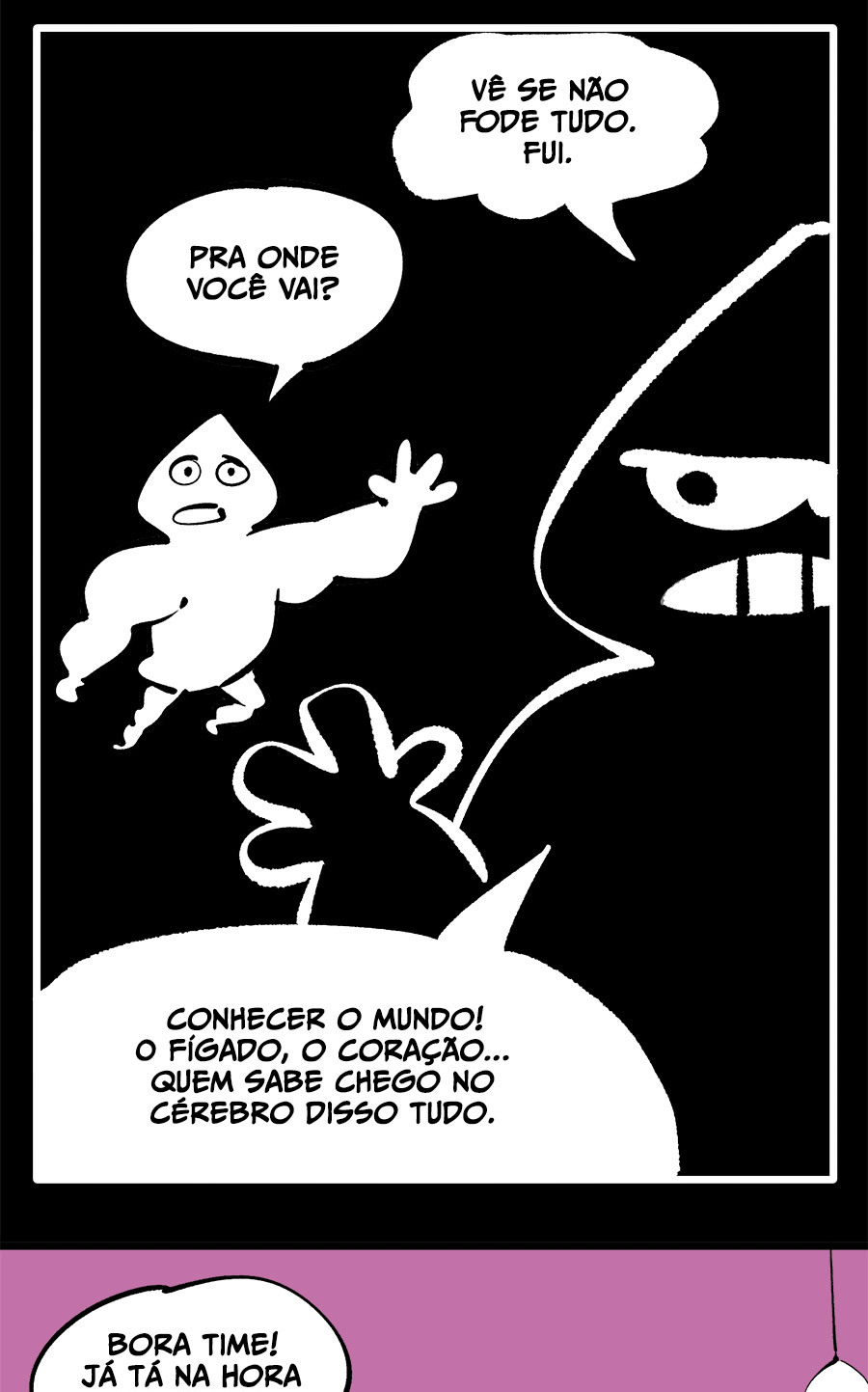 Entre empregos humilhantes, diarreias evangélicas, spoilers violentos, coaches do tempo e síndicos fascistas, Télvis contará com seu amigo Dark e com a misteriosa Câmera para fazer desse mundo intestinal um lugar menos nojento. Não no sentido higiênico, claro.
