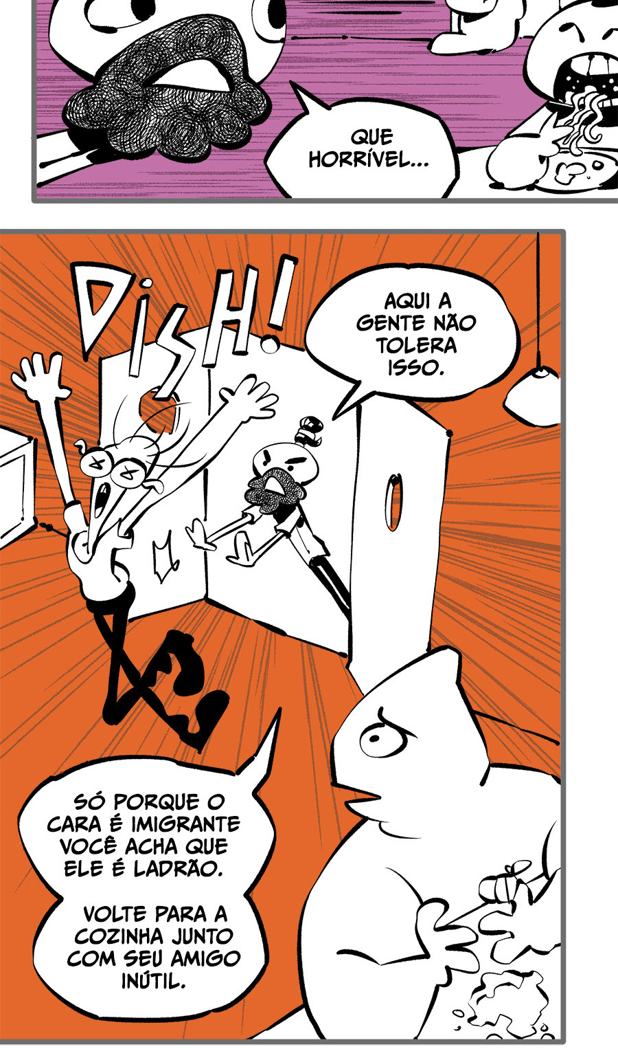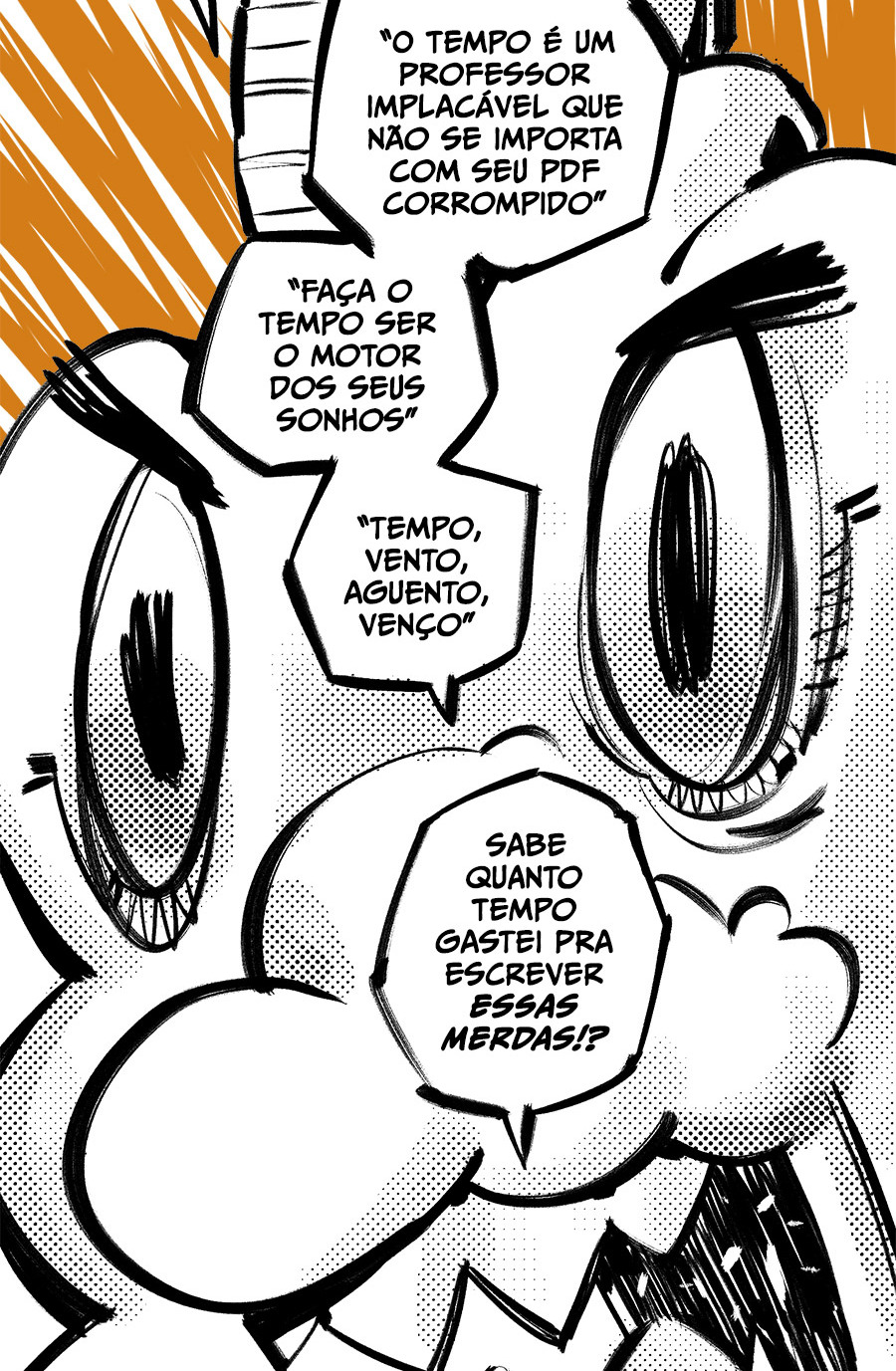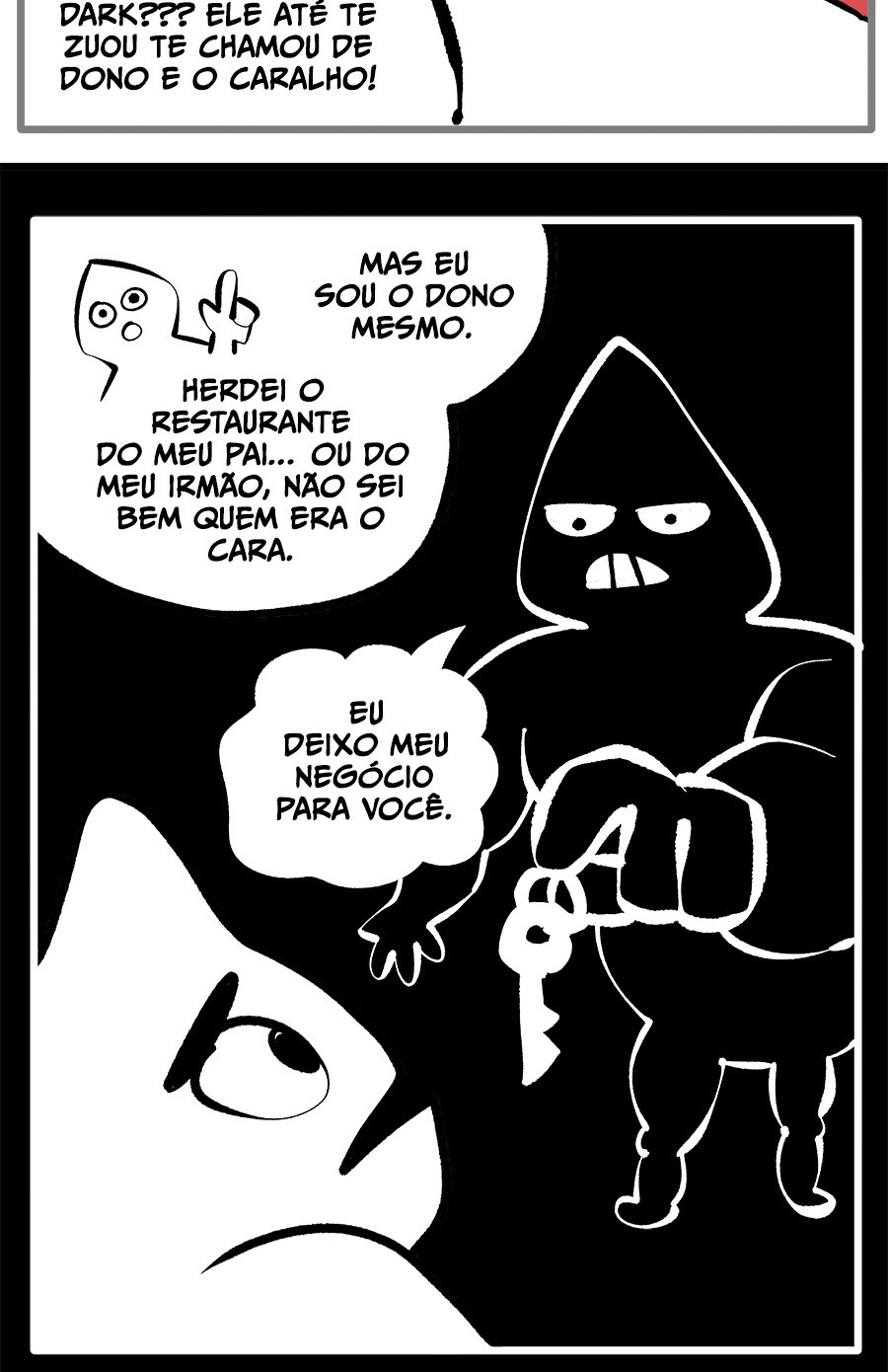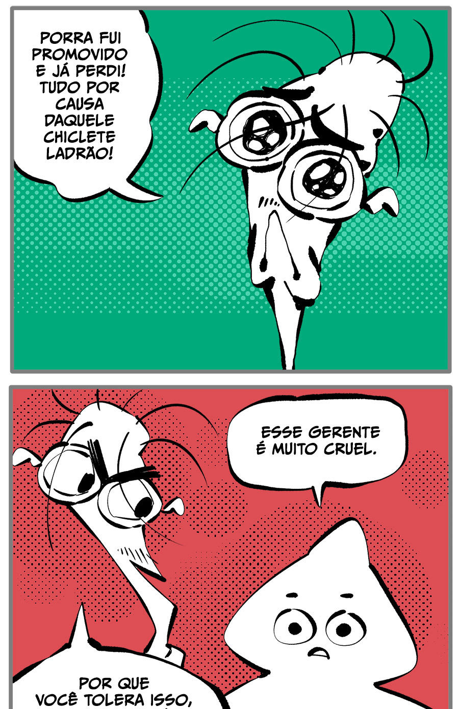Entre empregos humilhantes, diarreias evangélicas, spoilers violentos, coaches do tempo e síndicos fascistas, Télvis contará com seu amigo Dark e com a misteriosa Câmera para fazer desse mundo intestinal um lugar menos nojento. Não no sentido higiênico, claro.