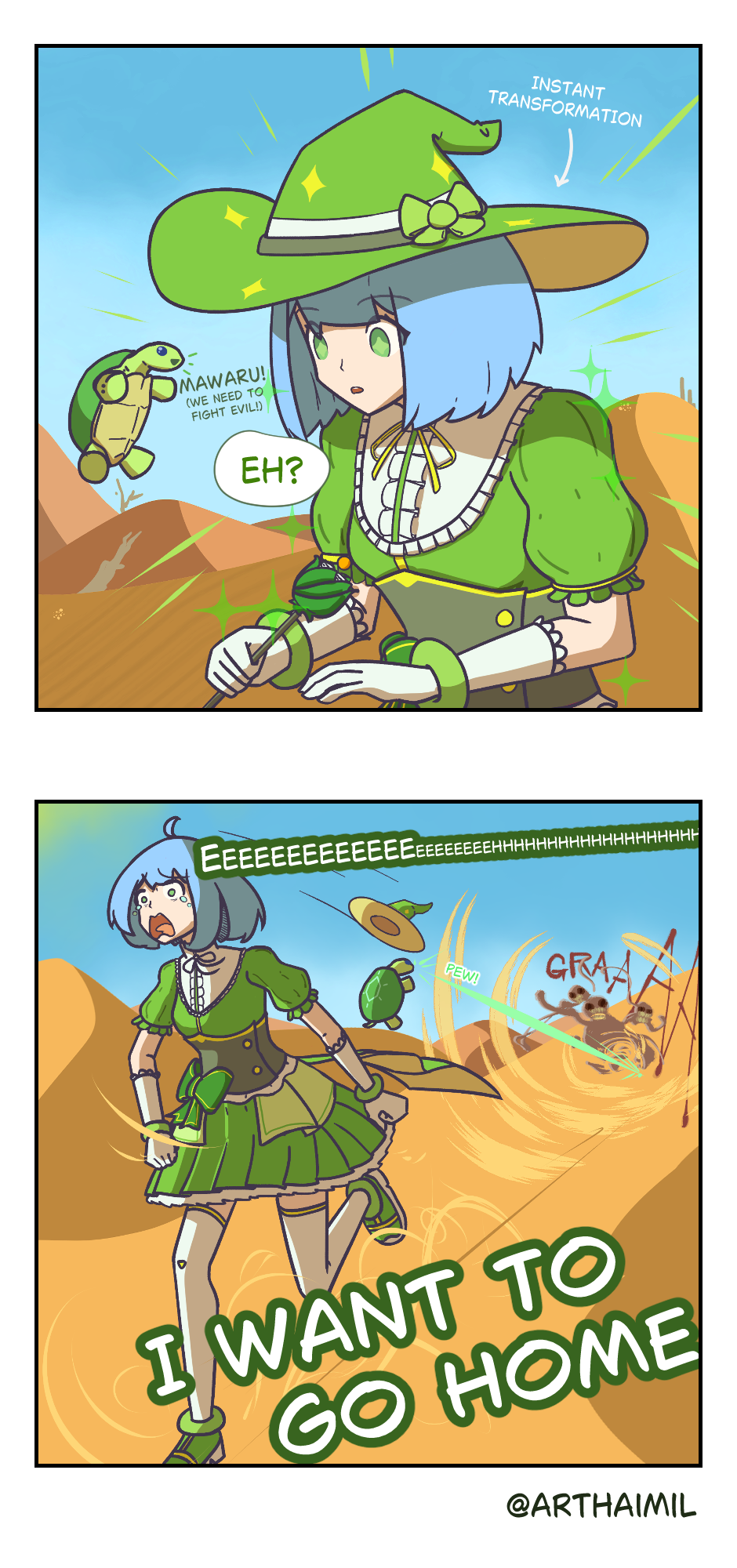 Hatsuko is an ordinary high school girl, but her pet tortoise, Mawaru, is a powerful familiar. She was transformed into a magical girl! Now she's involved in supernatural and otherworldly problems!
