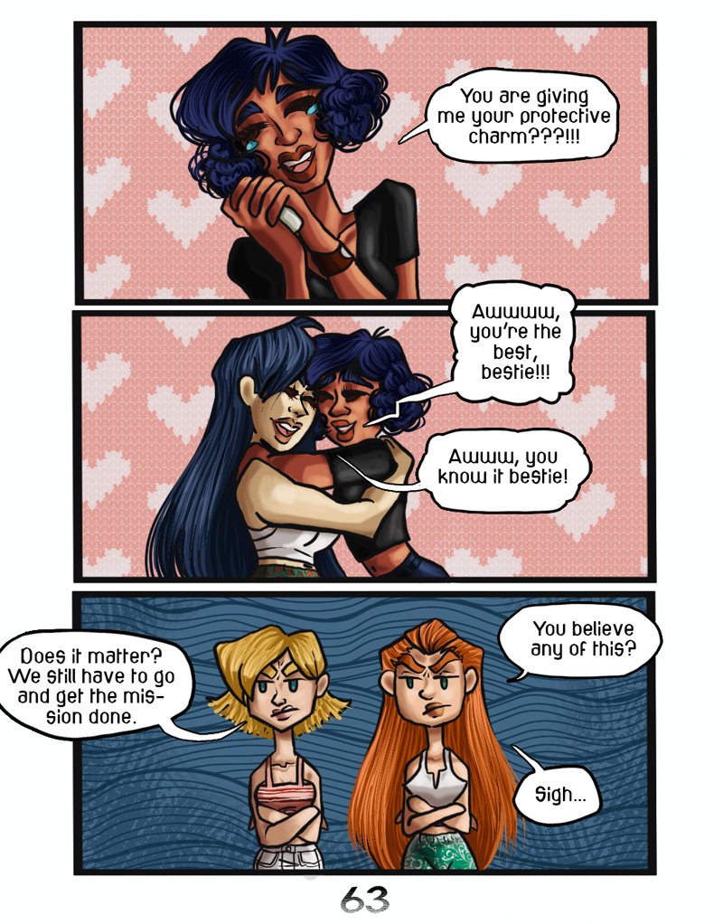 These are love stories between creatures of myth and university spies, loves which will question the balance between good and evil. Be prepared for some shenanigans, secrets, fights, break ups and make ups, that just might make you cry. If you’re like me and you wanted to see a crossover comic of Jackie Chan Adventures and Totally spies, then you are in the right place. Characters depicted in the comic belong to the copyright holder. This is a fanwork made for fun and will not be sold for profit.