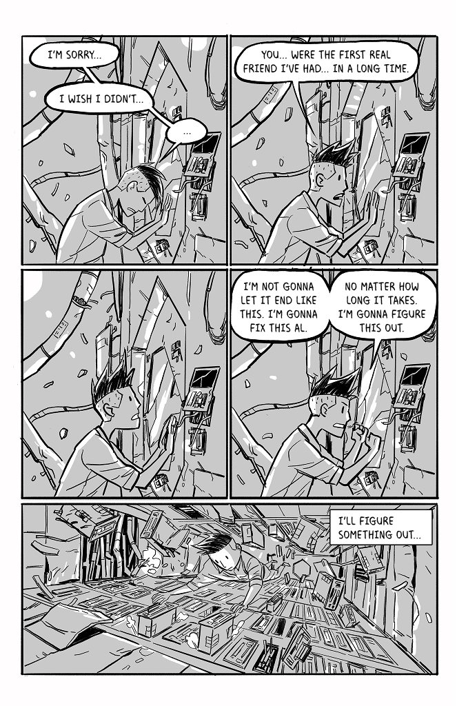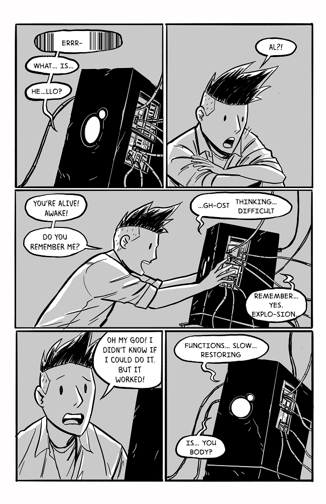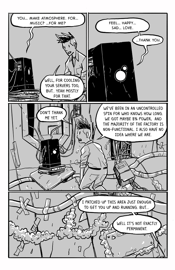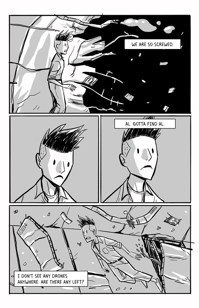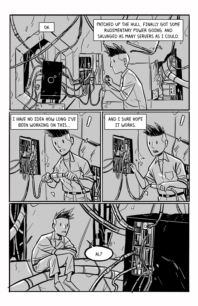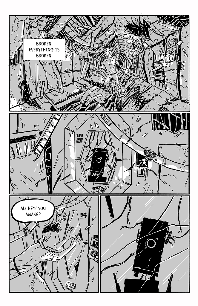 I like that you included the star spin in the backgrounds. As a ghost that can interfere with physical objects, couldn't he potentially exert enough rotational counterforce over time to stabilize the wreckage?
