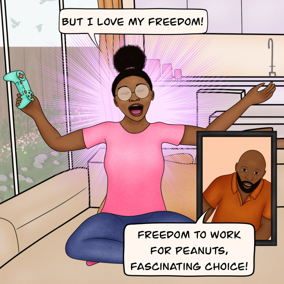 Queen is a creative woman who almost has her life together. Deadlines get met (barely), projects get finished (eventually), and she somehow always looks like she slept eight hours. Behind the scenes? It’s one long battle between ambition, procrastination, and the ever-growing to-do list.