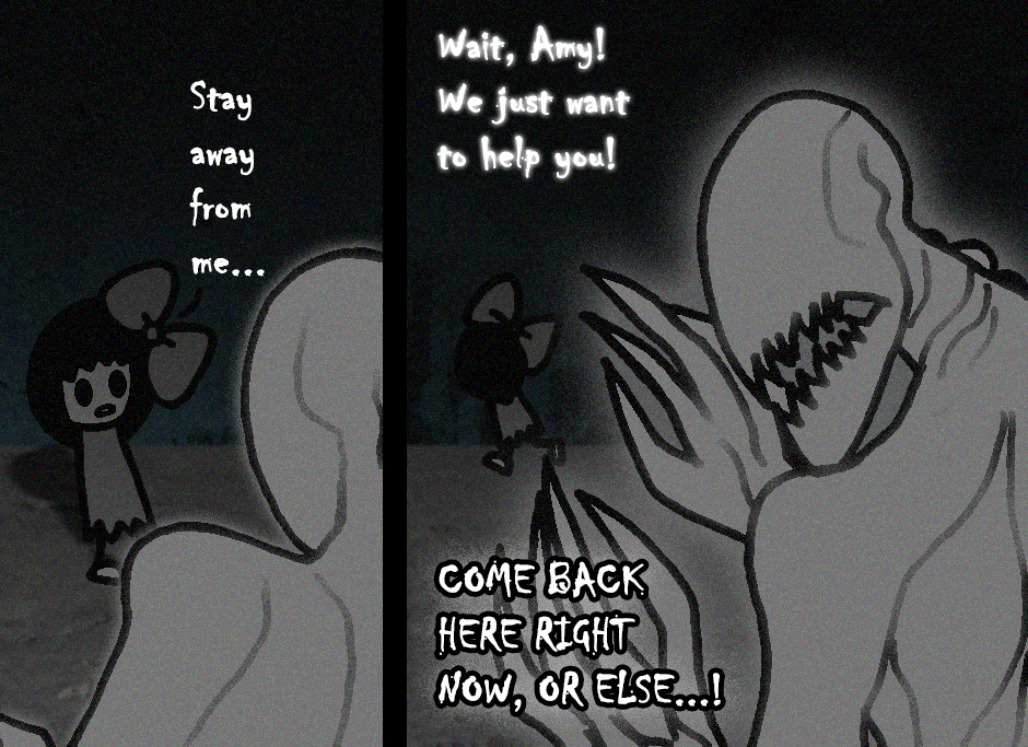 What to do now...? Now that Amy has chosen to kept her illusions, these are her two possible choices: OPTION A: Summon an imaginary friend to your aid. OPTION B: Summon an inner demon.