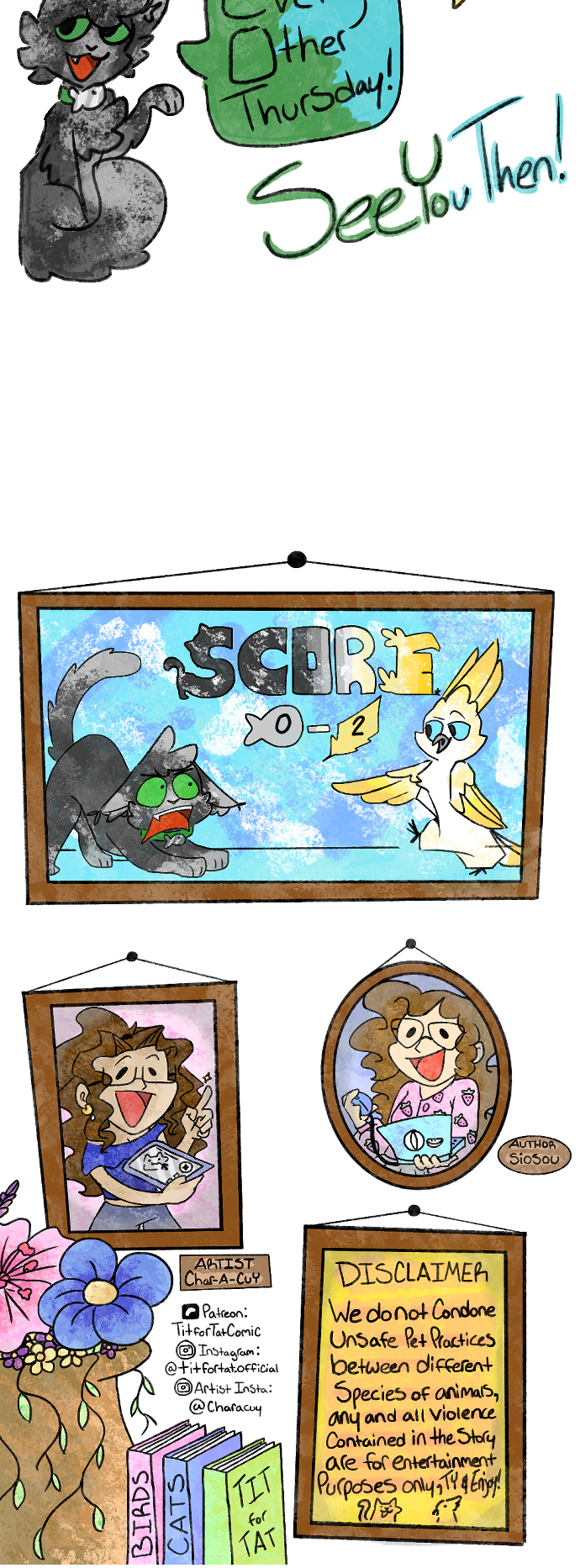 From harmless pranks to assassination attempts, this cockatoo and tuxedo cat just can't seem to get along! Watch Poptart and Mittens stop at nothing to one up one another, all while their elderly owners are none the wiser. Updates every other Wednesday!