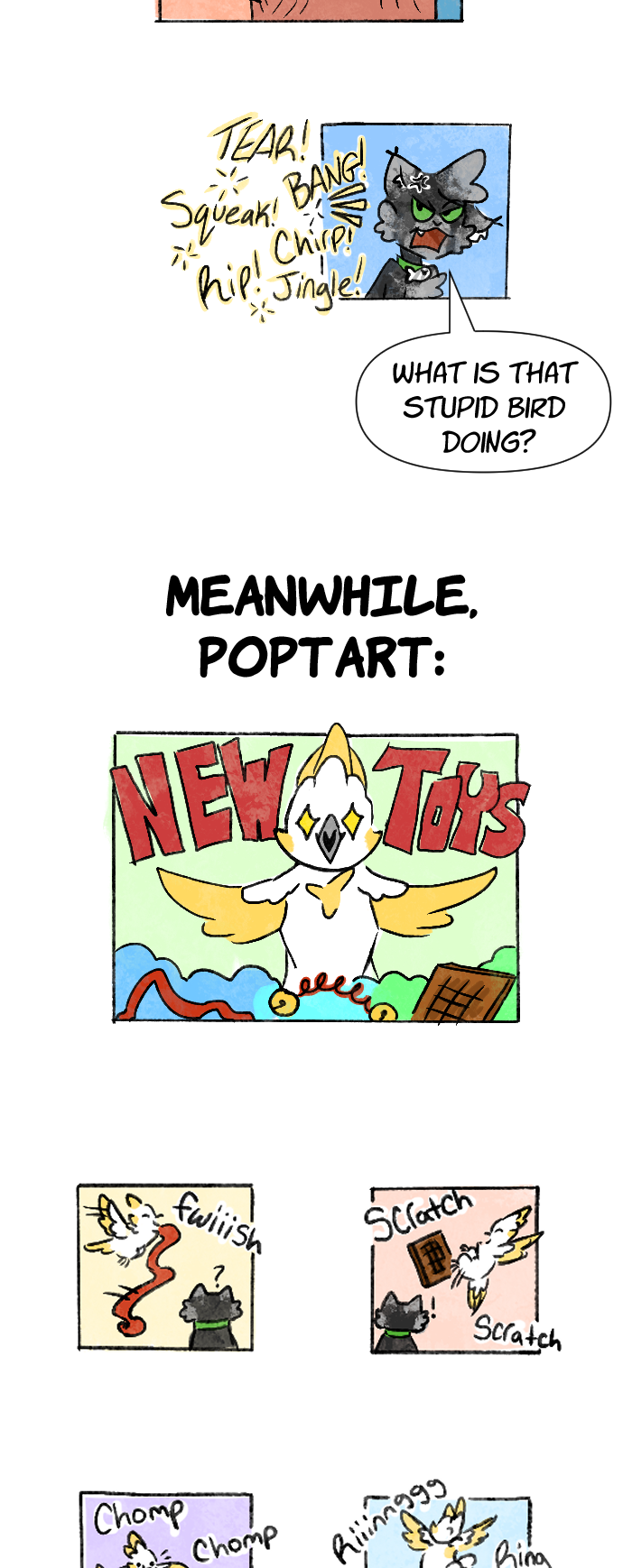 From harmless pranks to assassination attempts, this cockatoo and tuxedo cat just can't seem to get along! Watch Poptart and Mittens stop at nothing to one up one another, all while their elderly owners are none the wiser. Updates every other Wednesday!