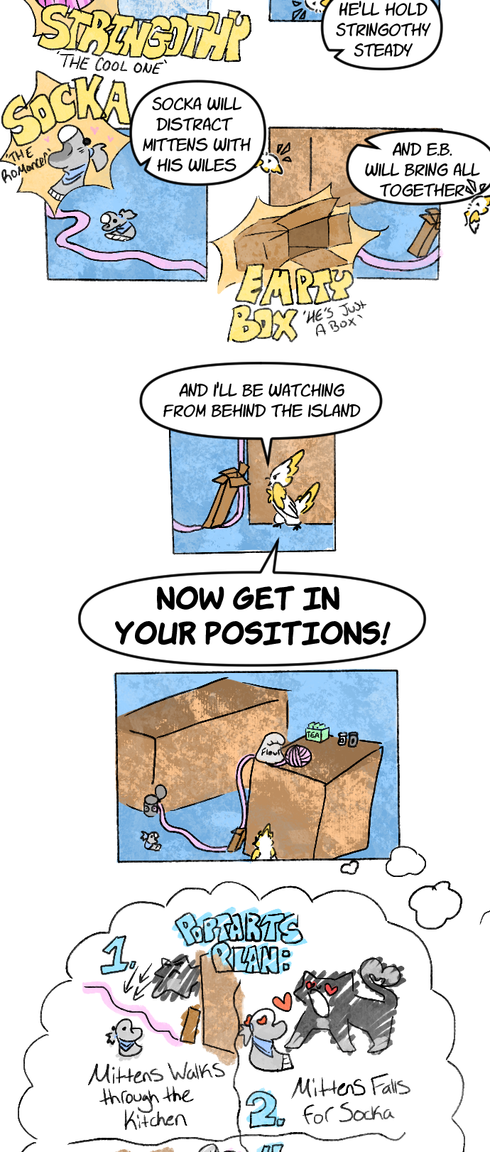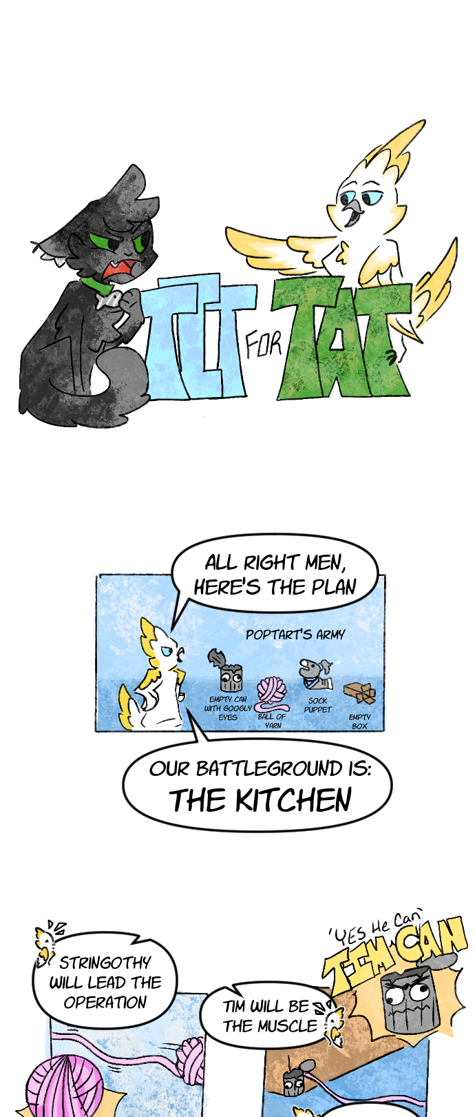 From harmless pranks to assassination attempts, this cockatoo and tuxedo cat just can't seem to get along! Watch Poptart and Mittens stop at nothing to one up one another, all while their elderly owners are none the wiser. Updates every other Wednesday!