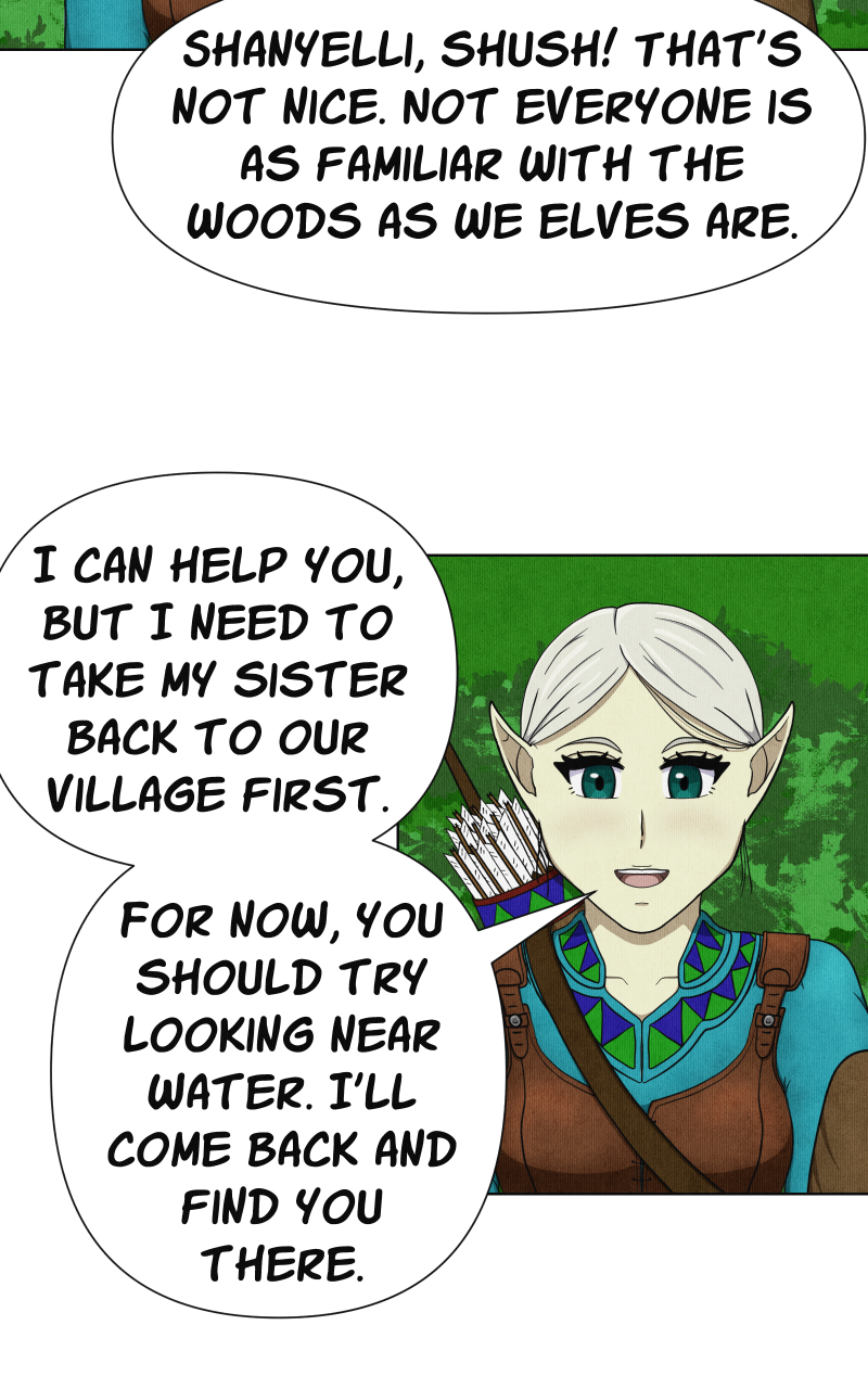 It turns out that finding a specific plant in a forest full of unfamiliar plants is not so easy. I wonder what the elven village is like.