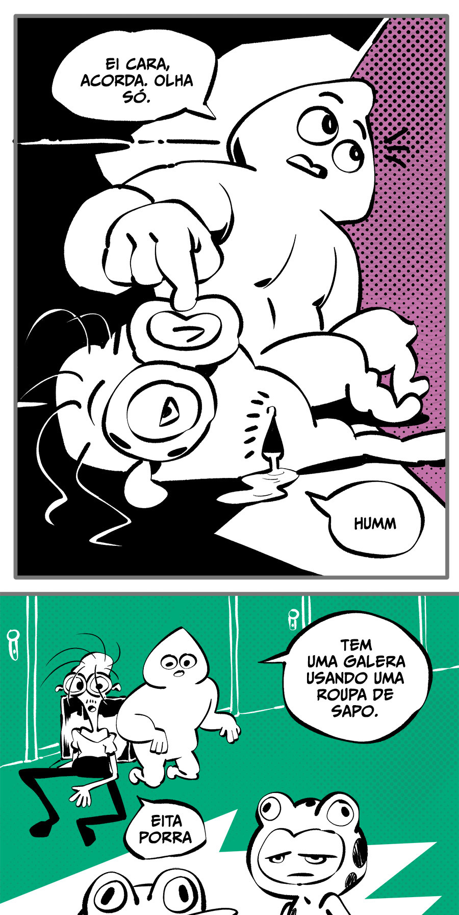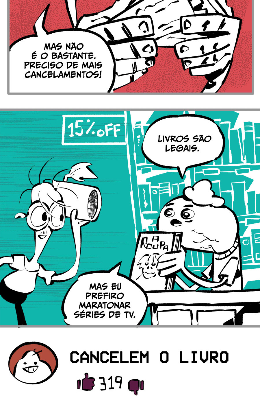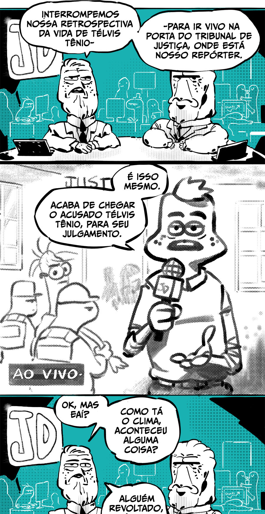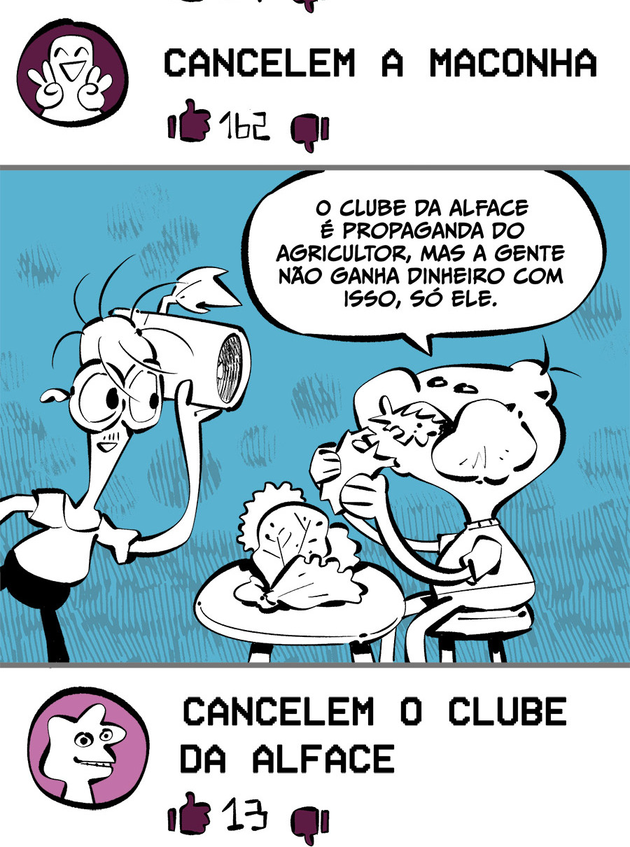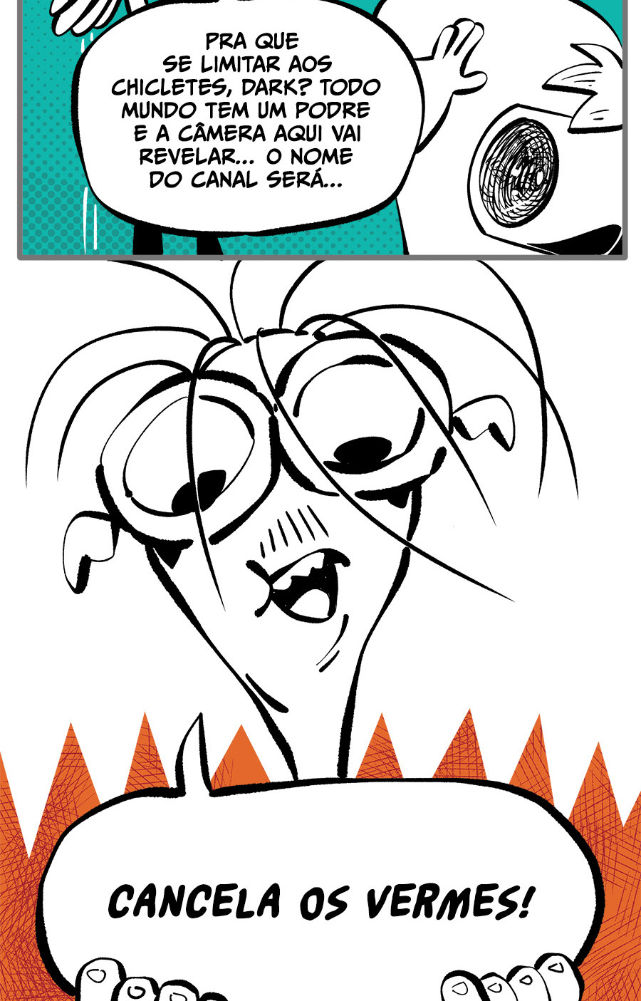 Entre empregos humilhantes, diarreias evangélicas, spoilers violentos, coaches do tempo e síndicos fascistas, Télvis contará com seu amigo Dark e com a misteriosa Câmera para fazer desse mundo intestinal um lugar menos nojento. Não no sentido higiênico, claro.